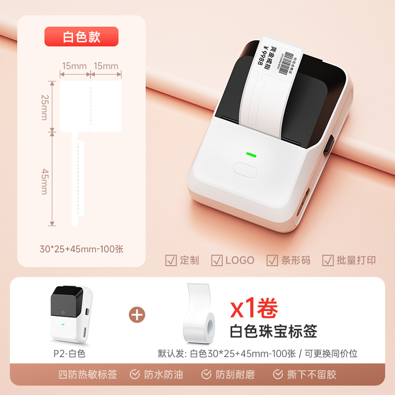 Specifications and models: [recommended package] p2 label machine + 7 rolls of white jewelry labels + 1 more roll for ordering