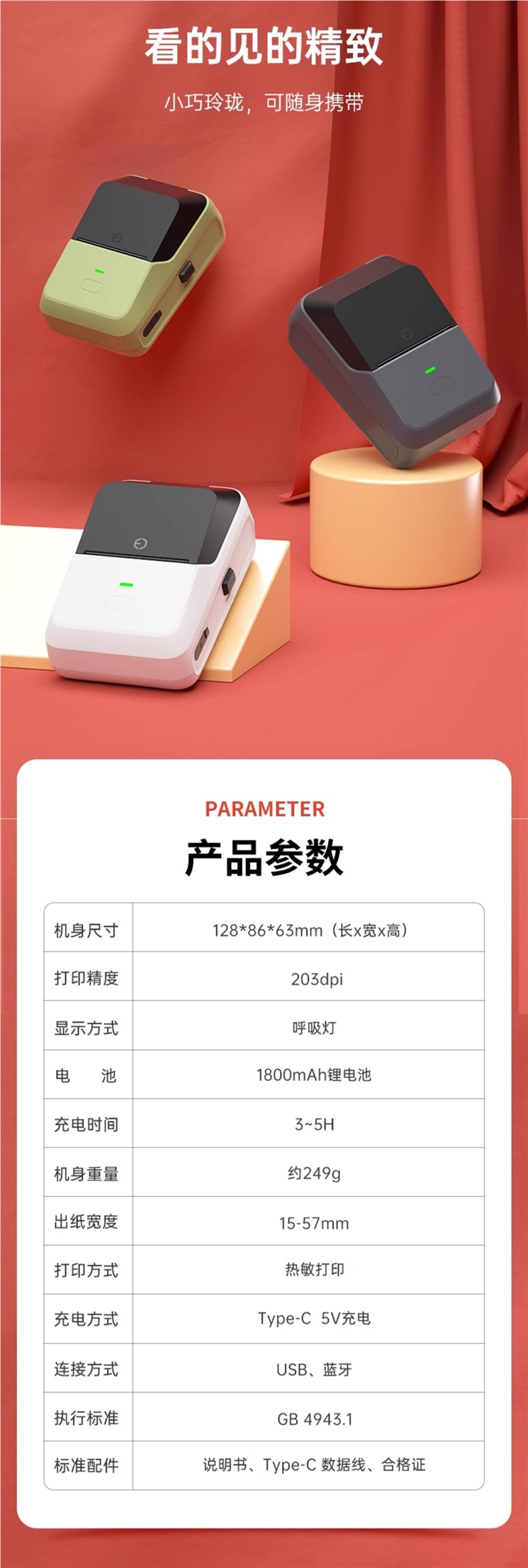 Specifications and models: P2 label machine + 3 rolls of festive red jewelry labels + 1 more roll for ordering