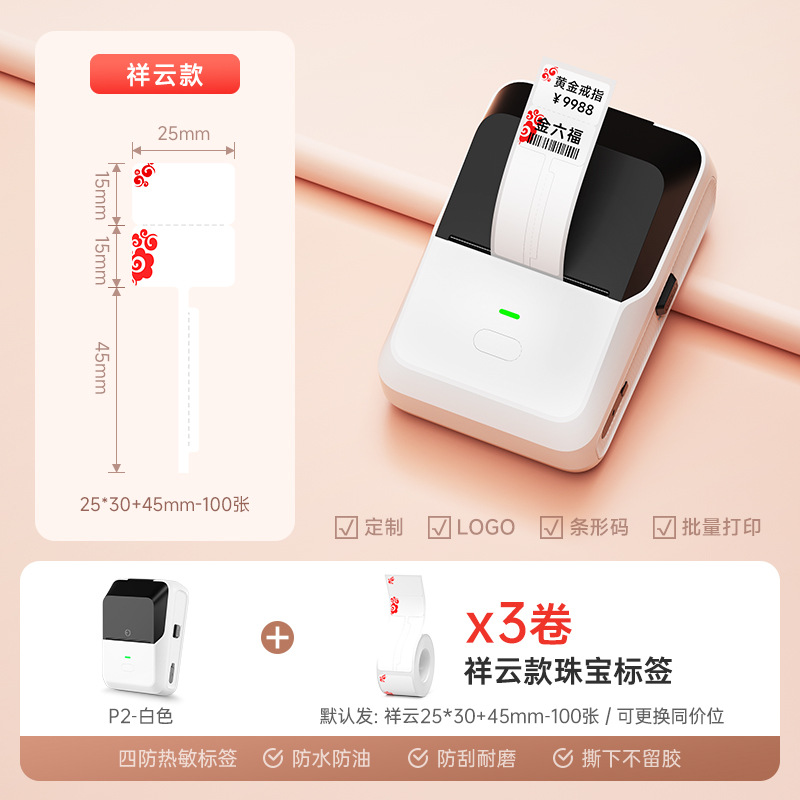 Specifications and models: P2 label machine + 3 rolls of xiangyunhong jewelry labels + 1 more roll for placing an order