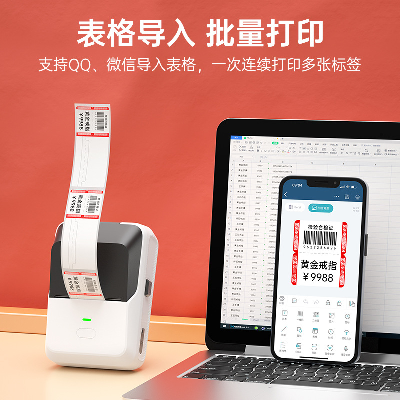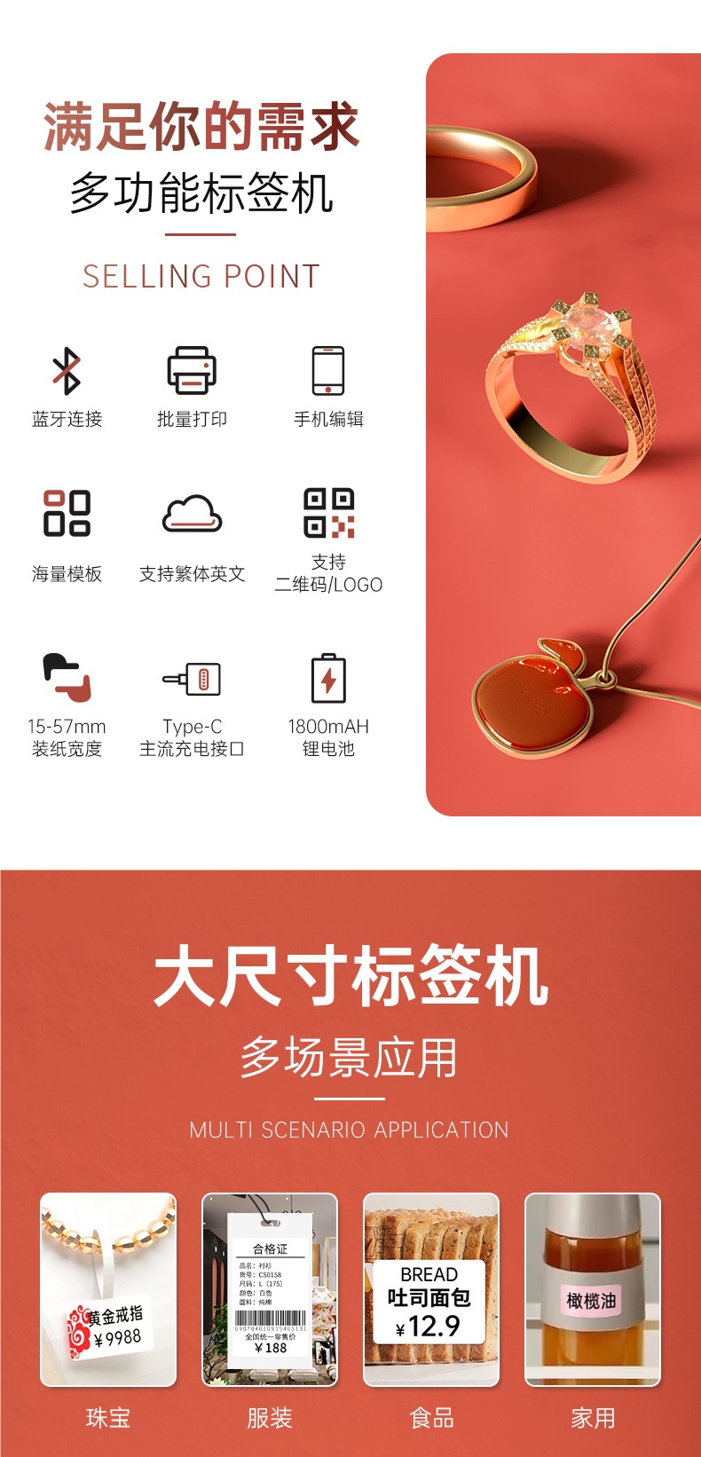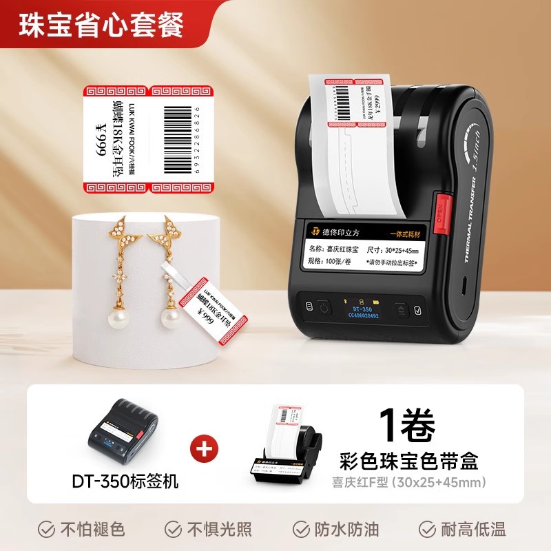 Specifications and models: P2 label machine + 7 rolls of festive red jewelry labels + 1 more roll for placing an order