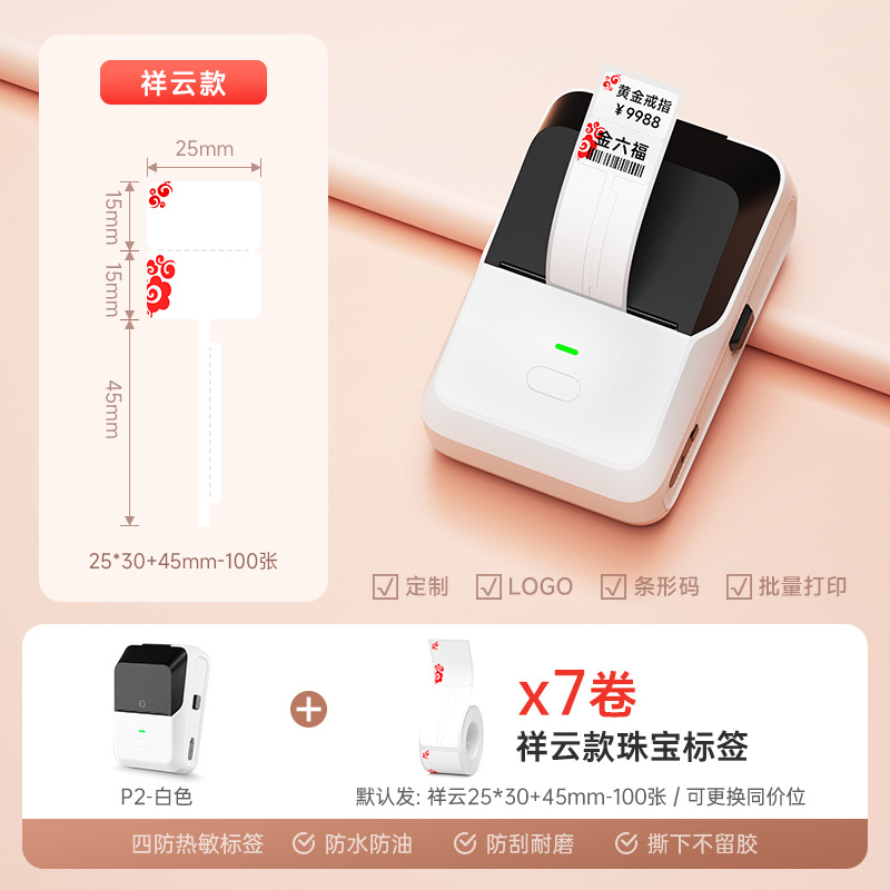 Specifications and models: P2 label machine + 7 rolls of xiangyunhong jewelry labels + 1 more roll for placing an order