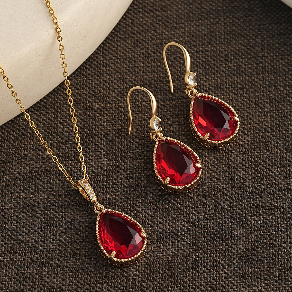 Color: Red earrings + pendant (including stainless steel chain)