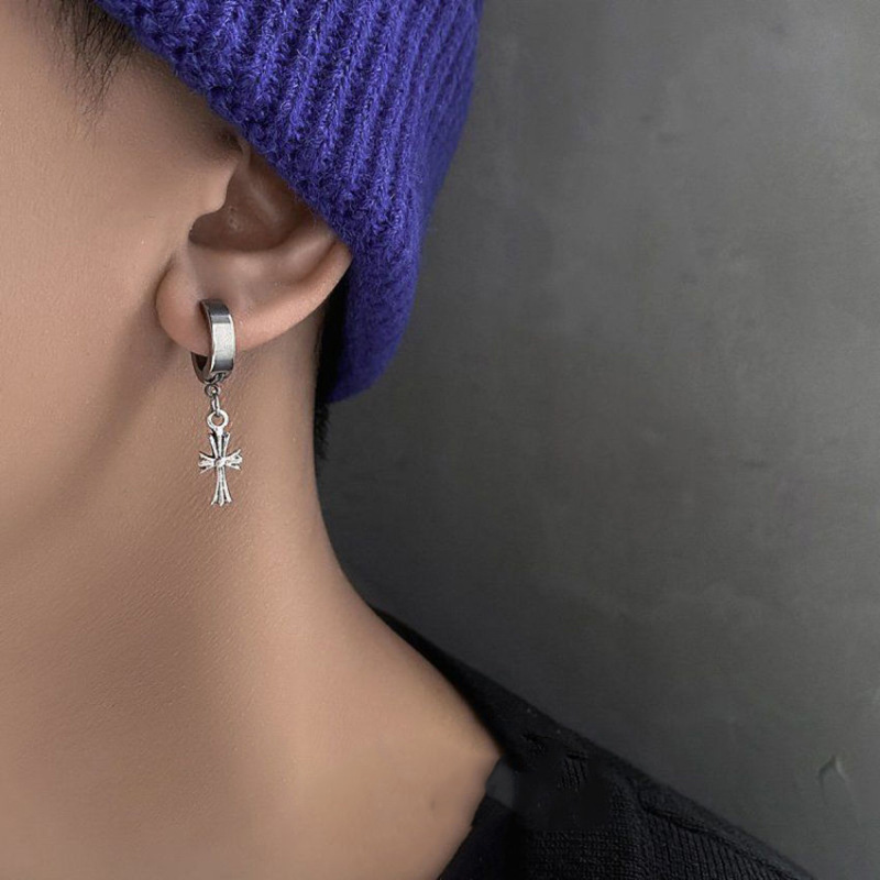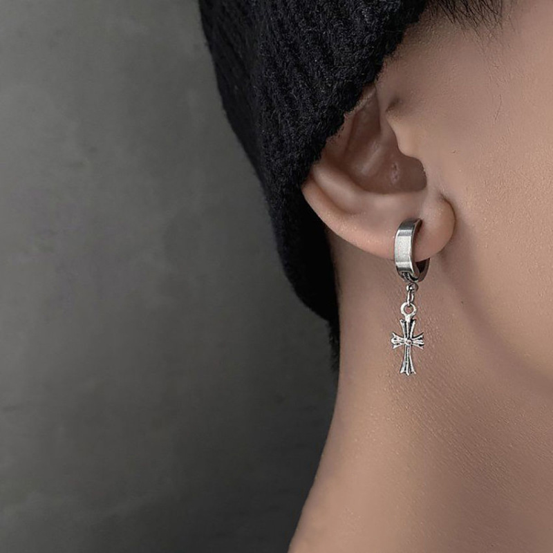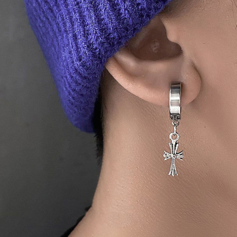 Cross Earrings Retro Trendy Personality Men's Ear Clips Hip-Hop Stylish Versatile Men's Earrings High-End Accessories