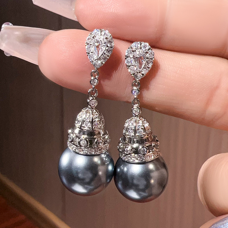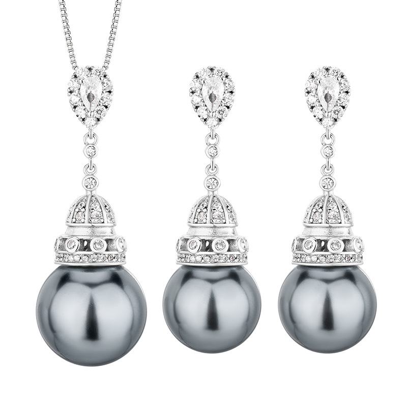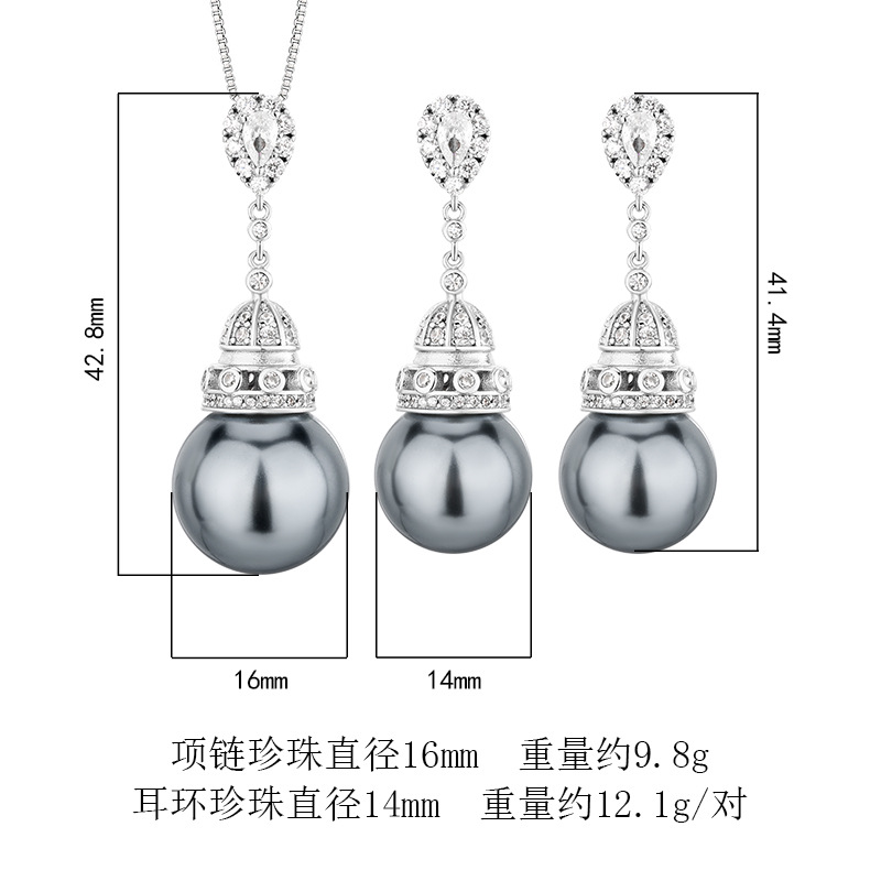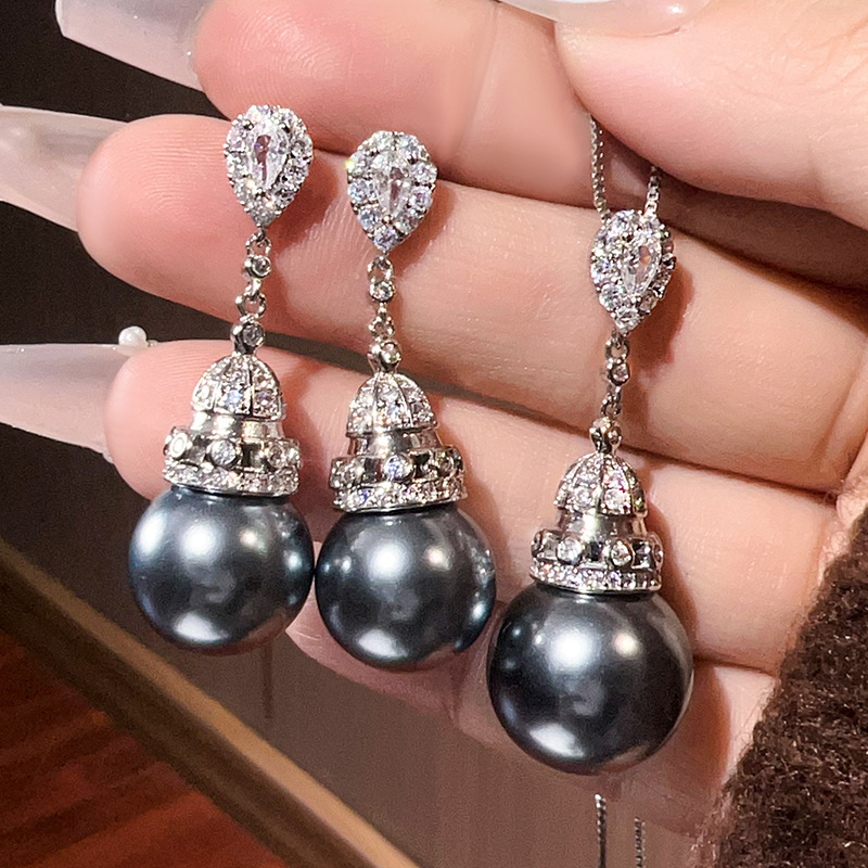 2024 New Zhuangshengsheng Jewelry Copper Base Gold Plated Inlaid Gray Pearl Temperament Tassel Set Women 16-14mm