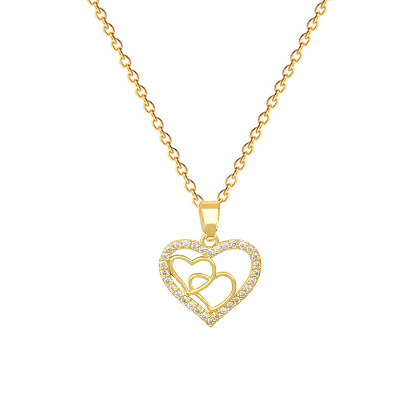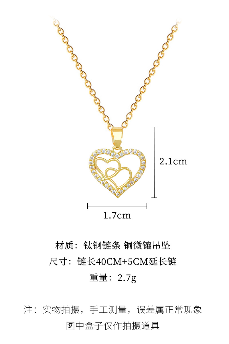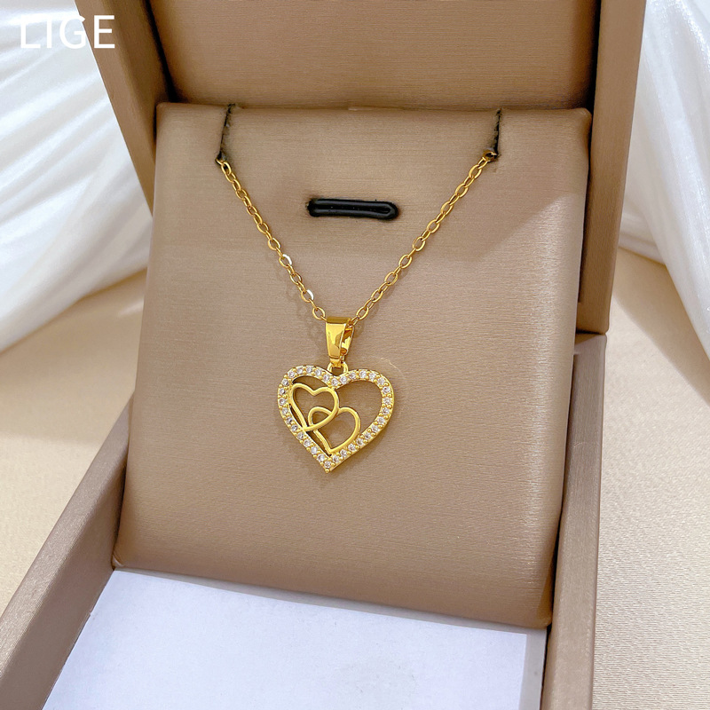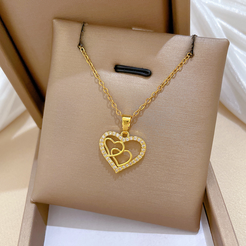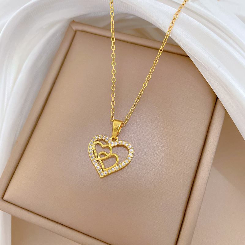 [Titanium Steel] Heart-To-Heart Love Light Luxury Elegant Gorgeous Full Diamond Necklace Women's Easiest for Match Clavicle Chain Titanium Steel Chain