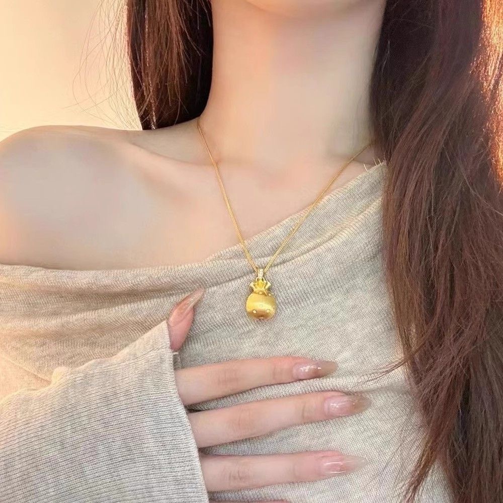 Gold-Plated Diamond-Studded Small Lucky Bag Pendant Necklace for Women, New Chinese-Style Light Luxury Niche Design Money Bag Clavicle Chain