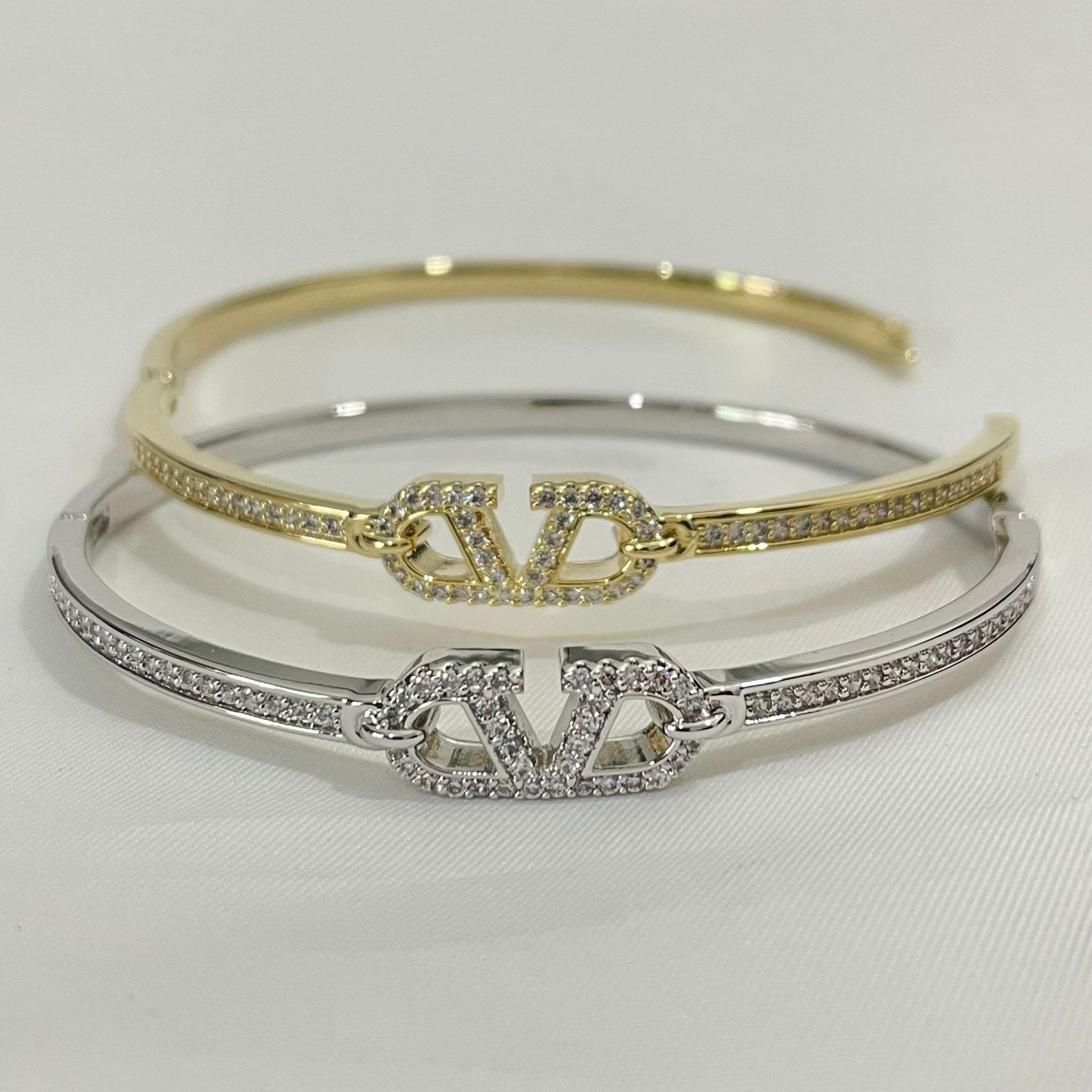 Rhinestone: High quality zircon cross-border supply letterv bracelet dubai thailand stone zircon bracelet