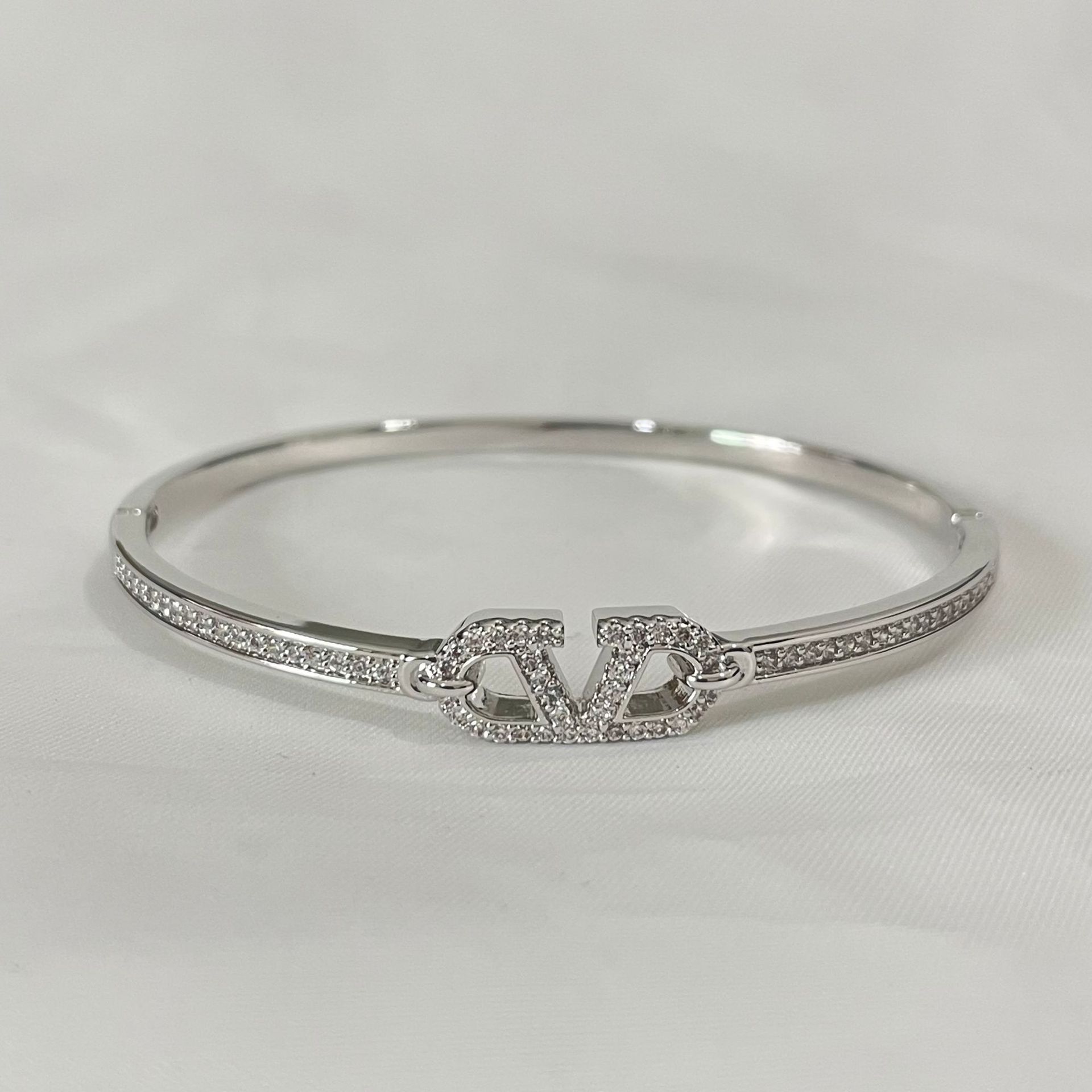 Color: Silver letter v zircon bracelet