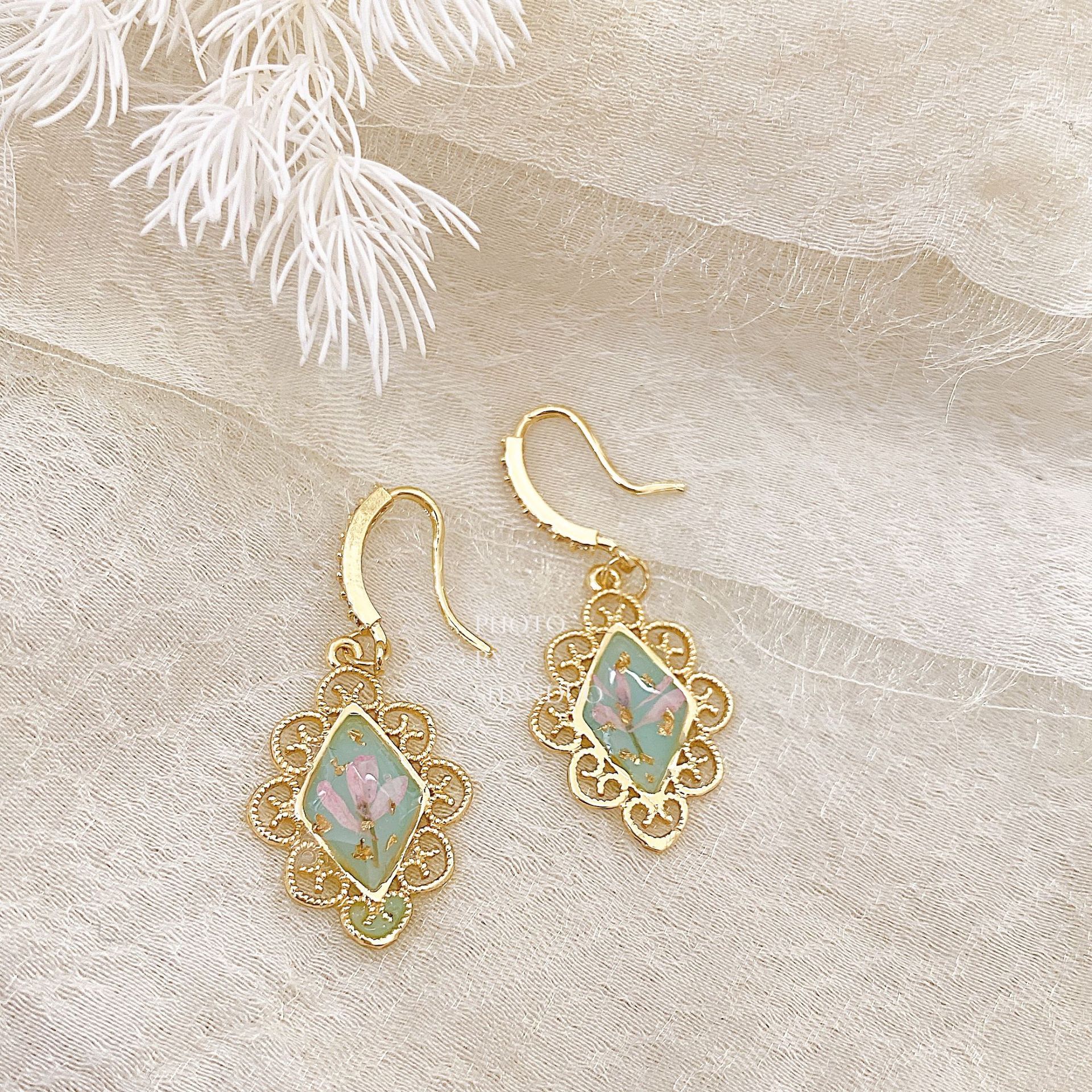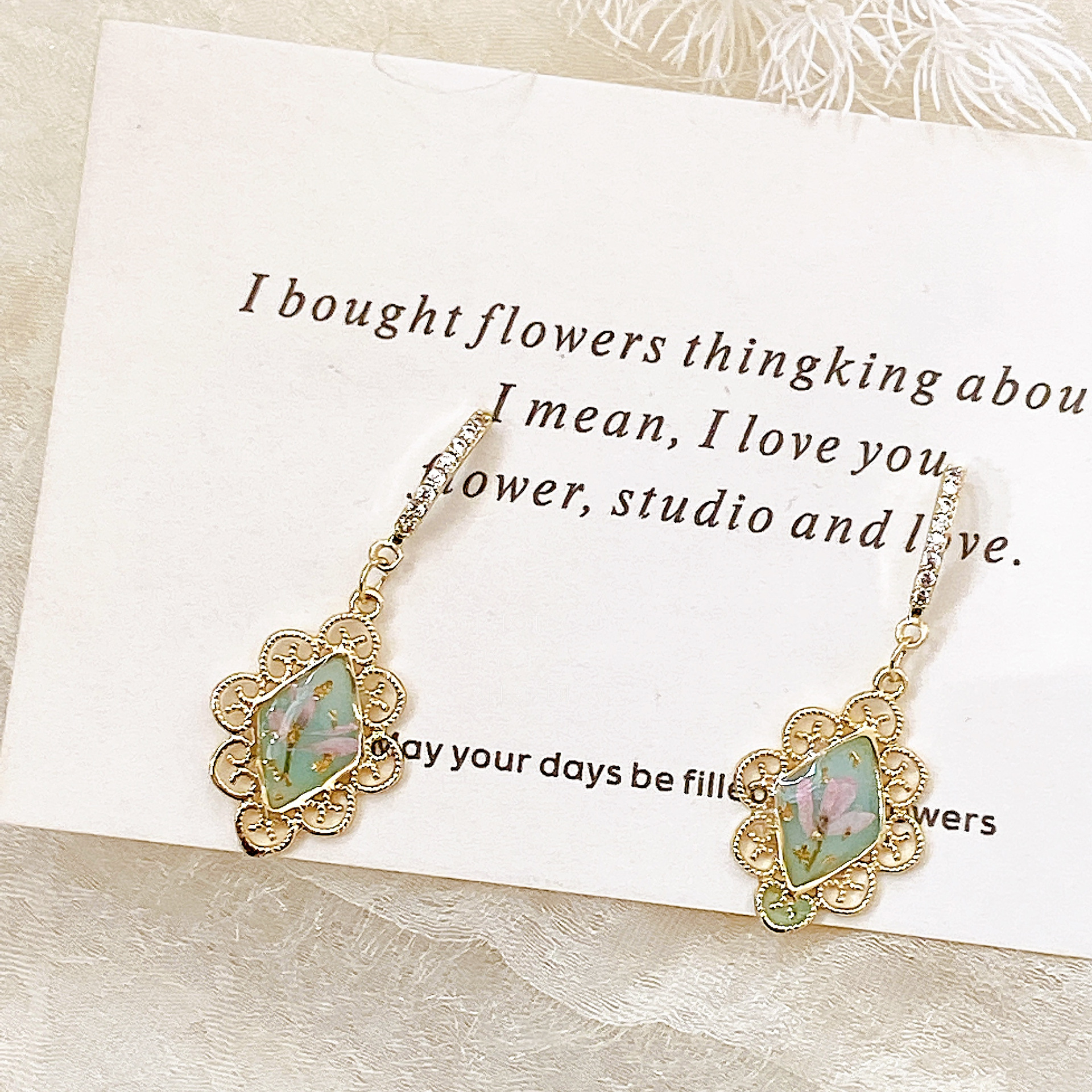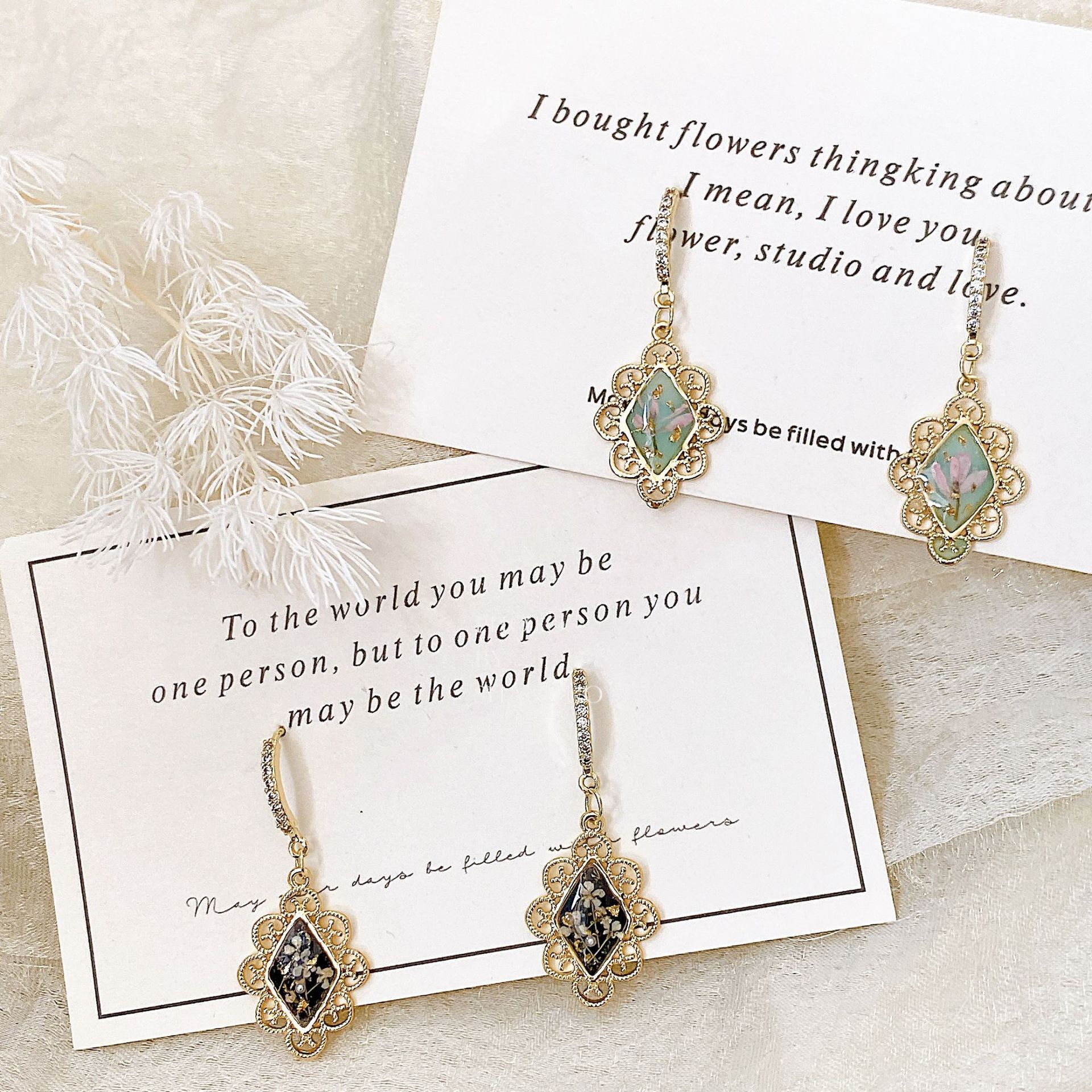Handmade Embossed Dried Flower Handmade Earrings Niche Design Sweet Elegant Earrings Earrings Real Flower Handmade Earrings