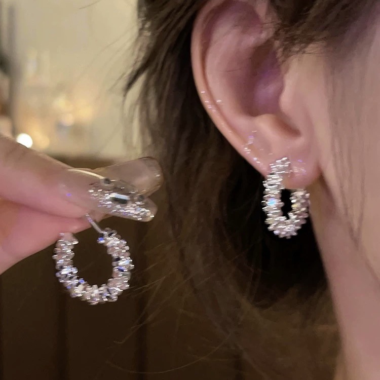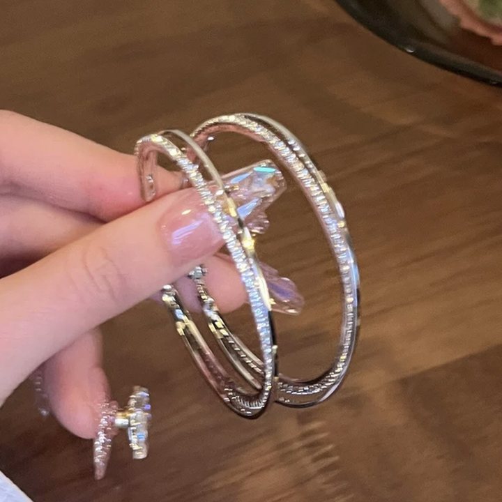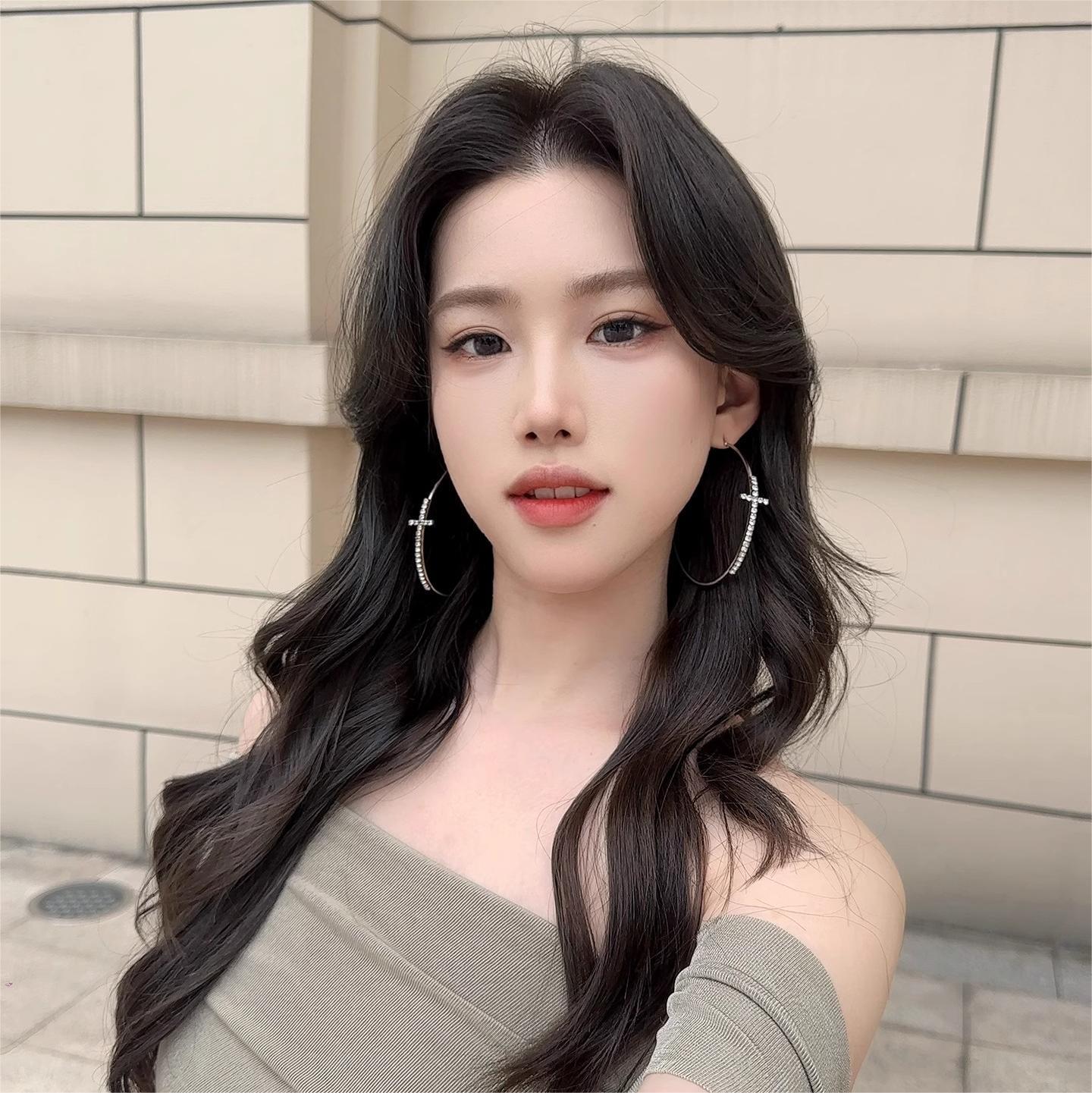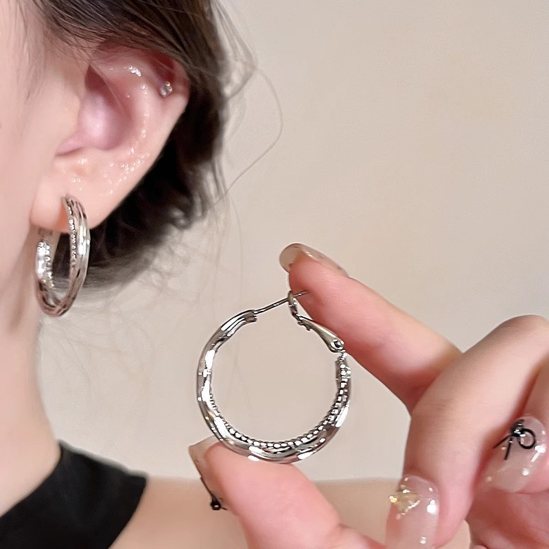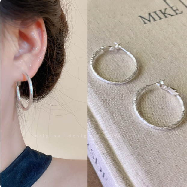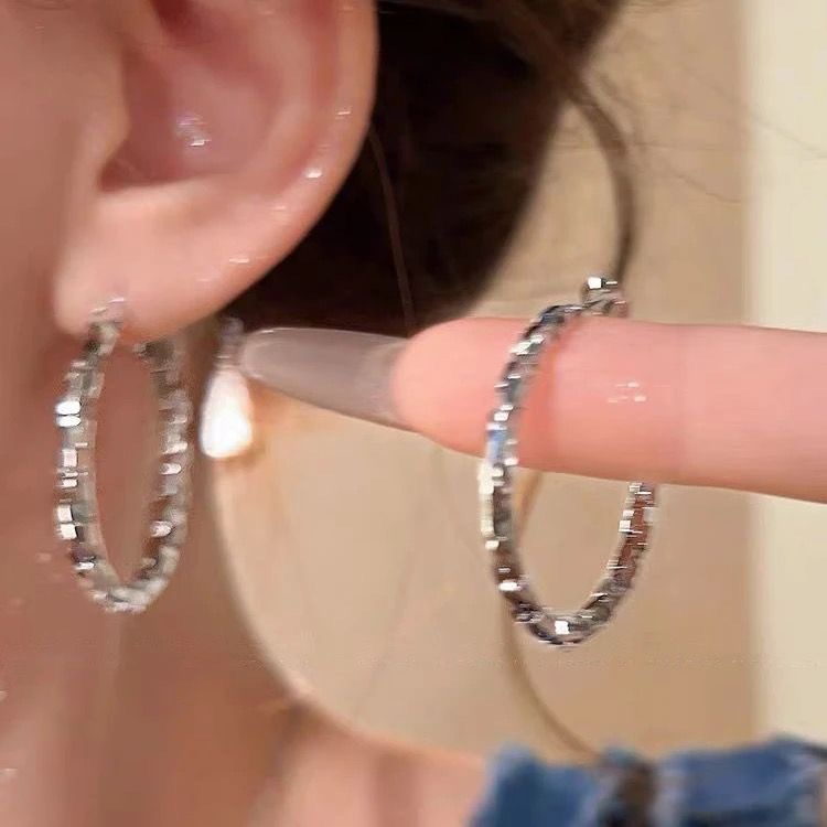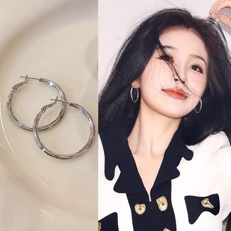 Color: 6 # Silver large earrings with a diameter of about 4.8cm