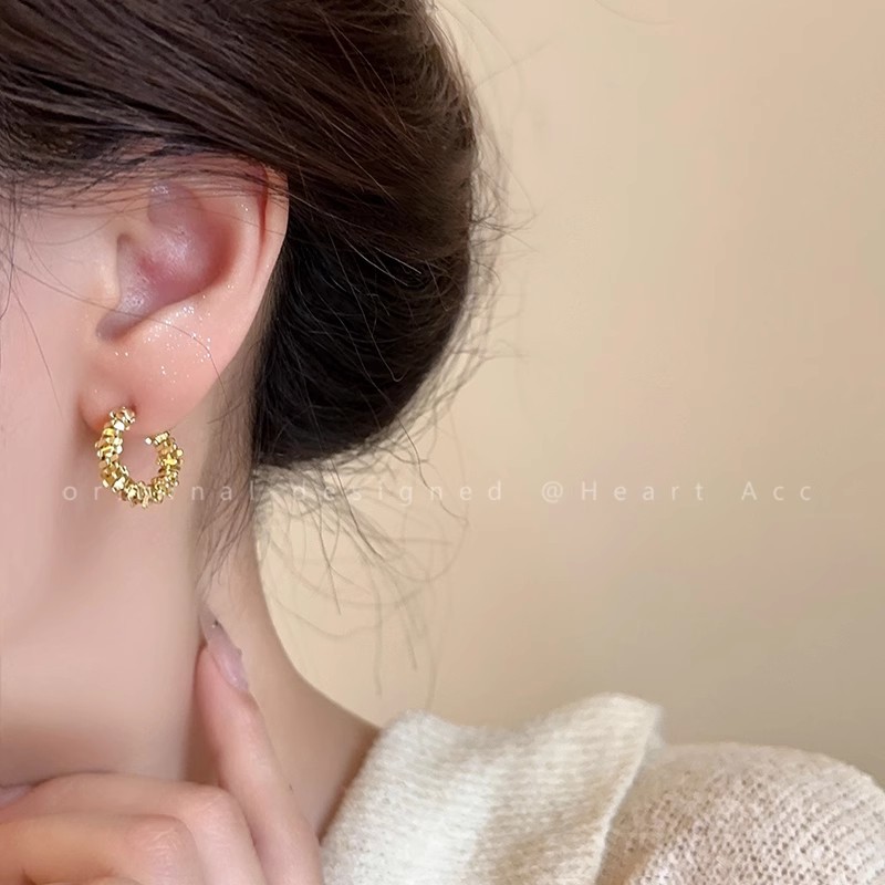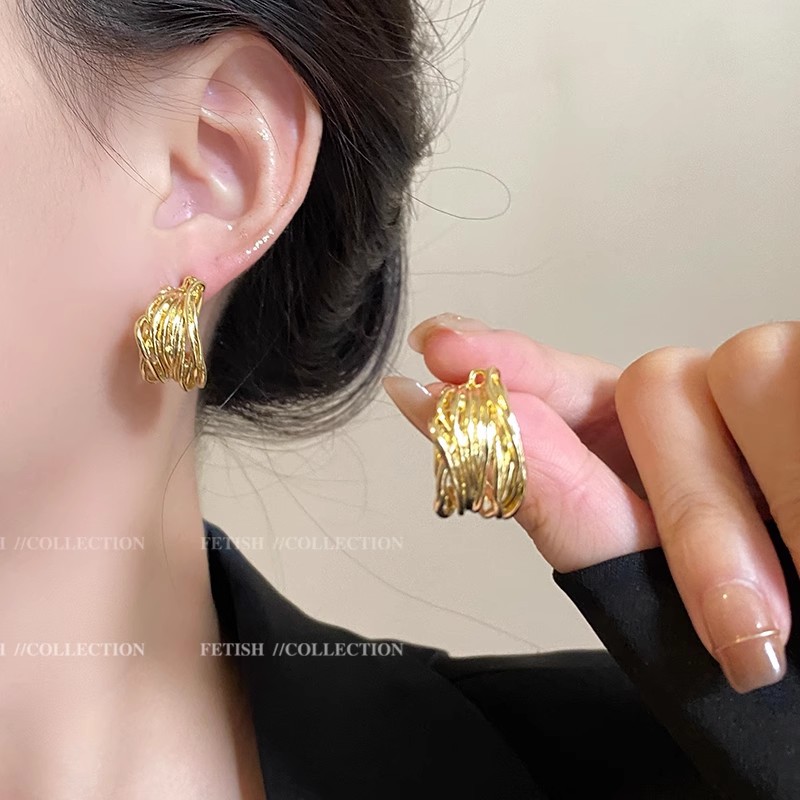 Color: 26 # Gold metal wrapped c-circle stud earrings