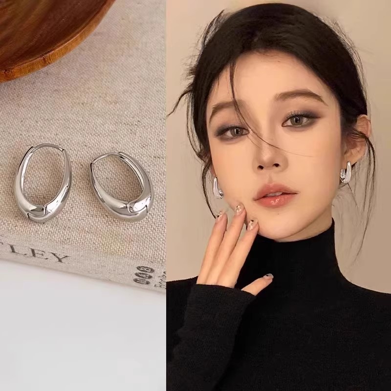 Color: 18 # Drop-shaped bright silver oval hoop earrings