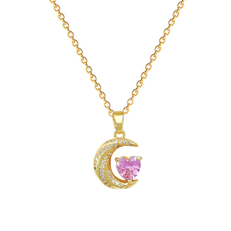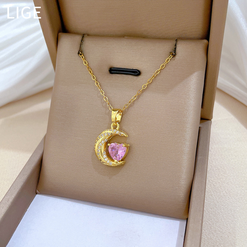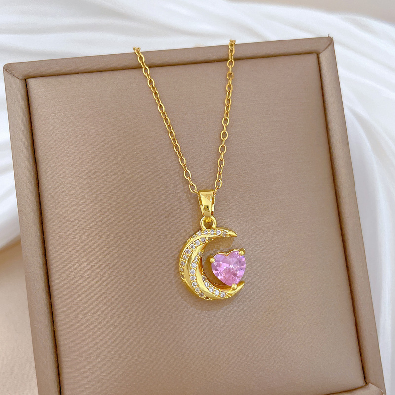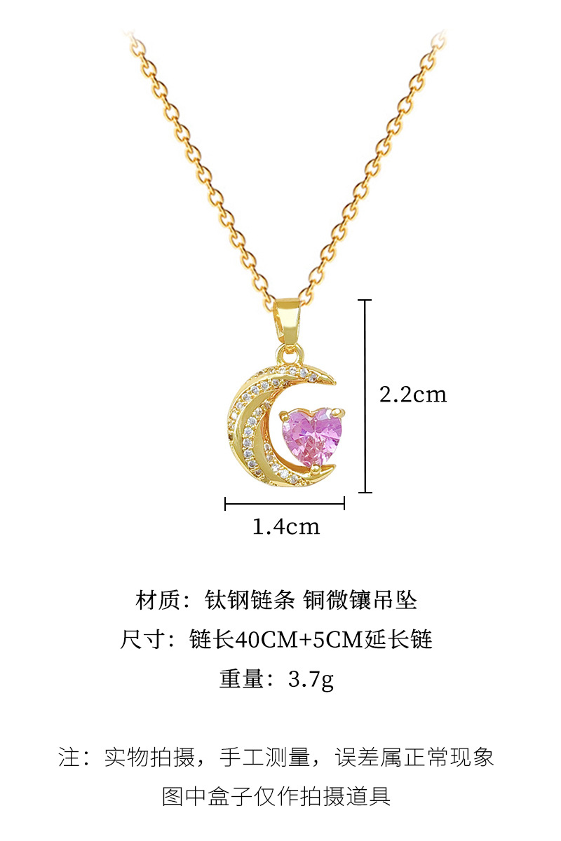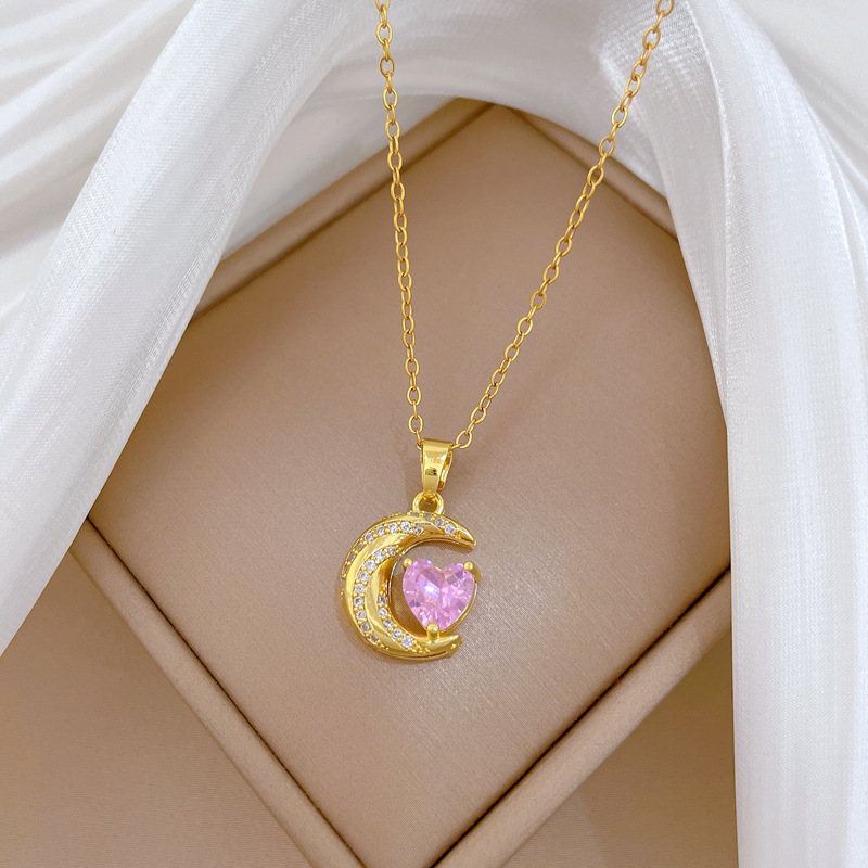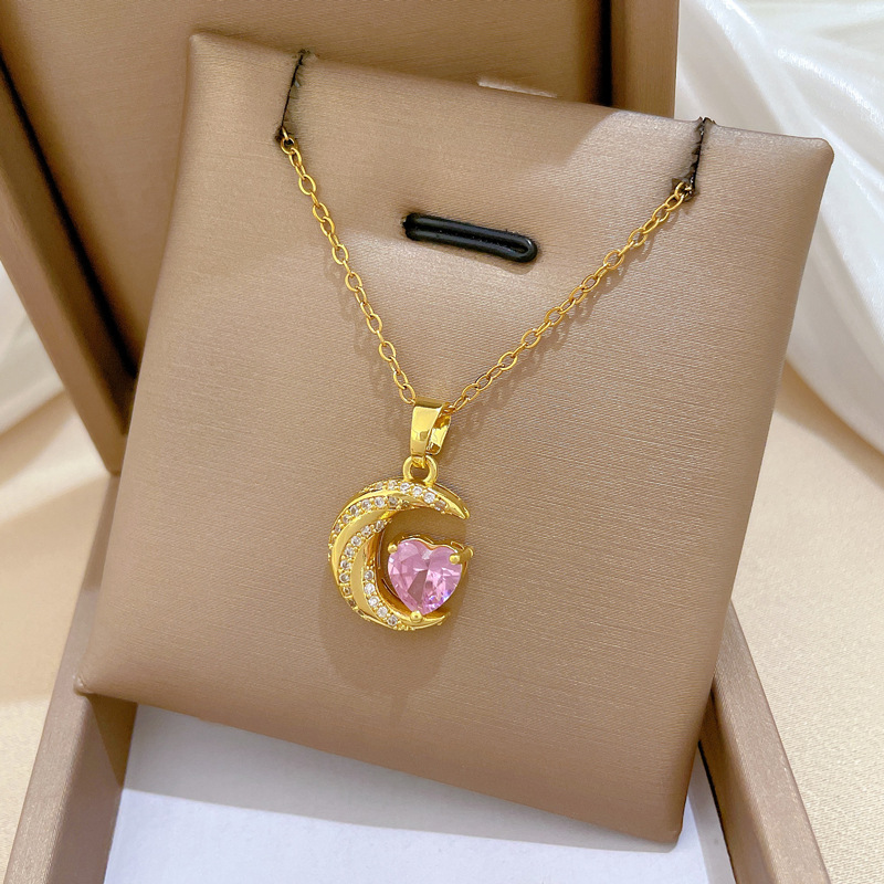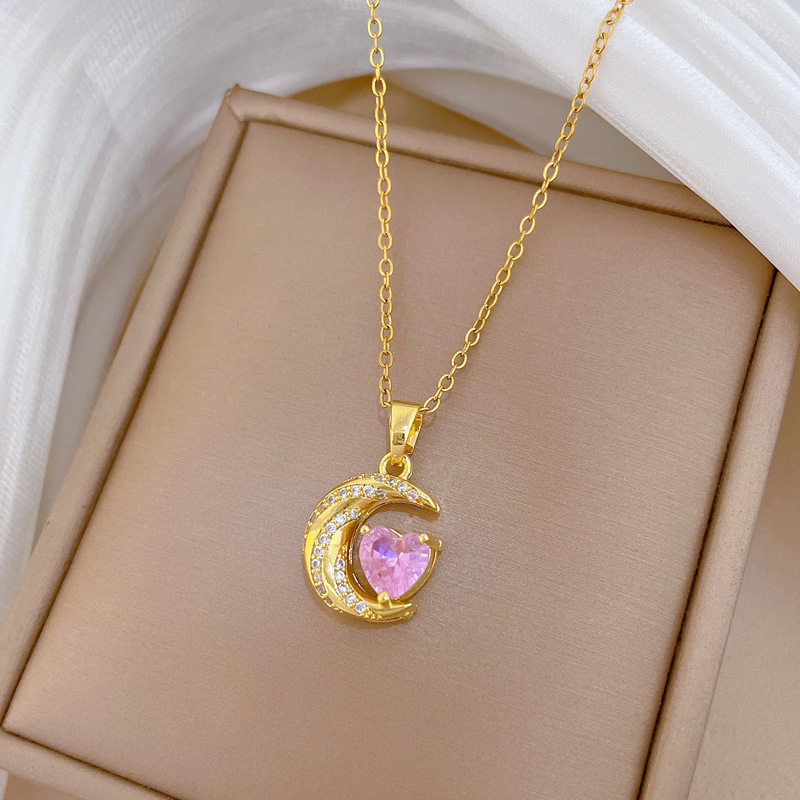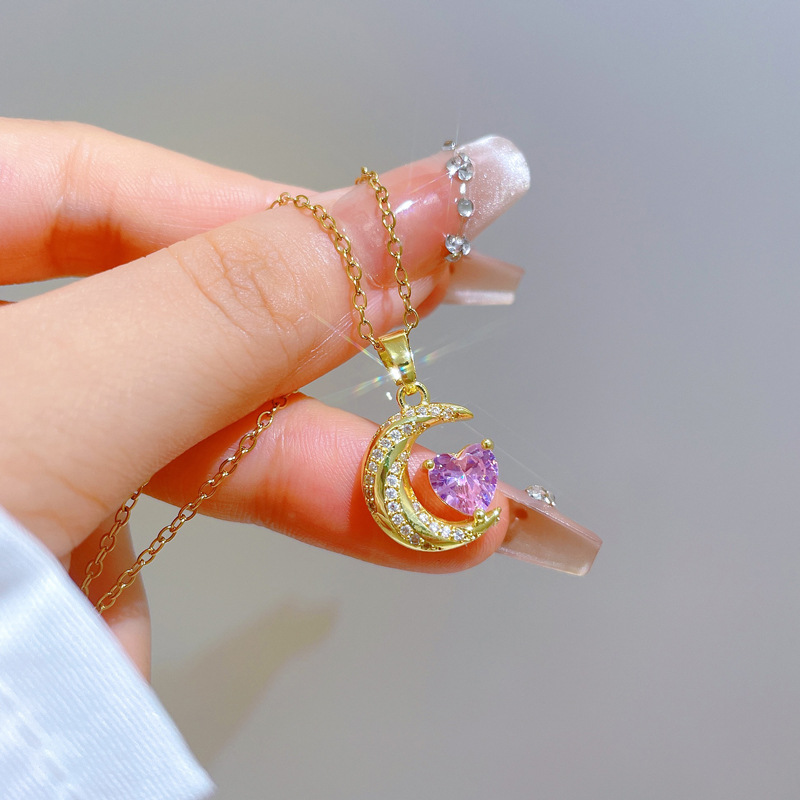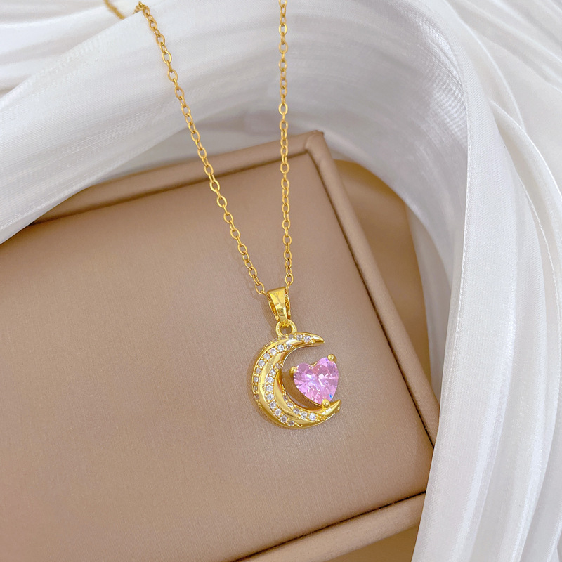 [Titanium Steel] Twisted Moon Love Light Luxury Temperament Gorgeous Full Diamond Necklace Women's Easiest for Match Clavicle Chain Titanium Steel Chain