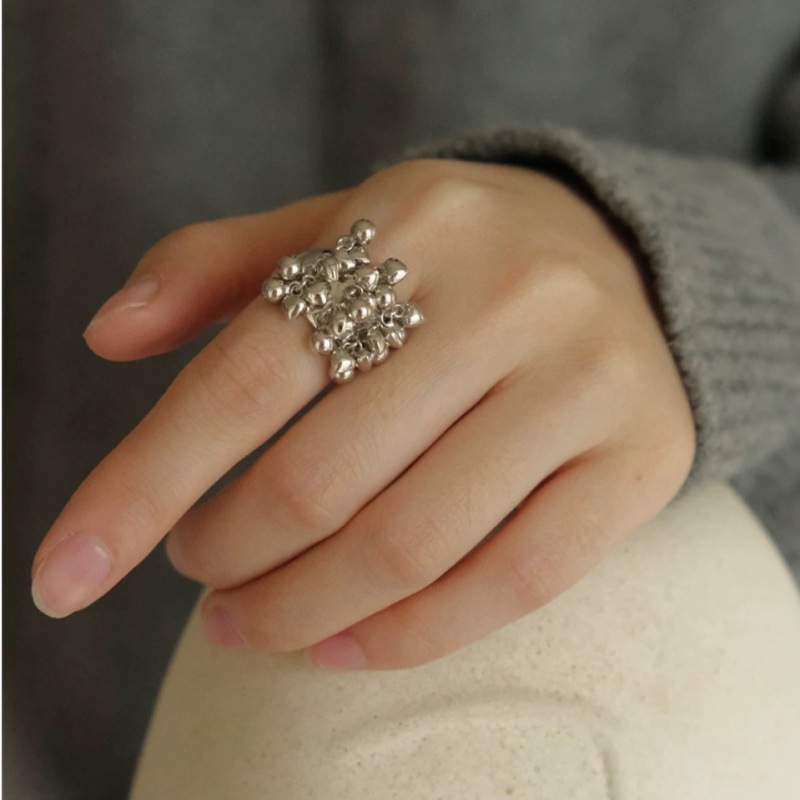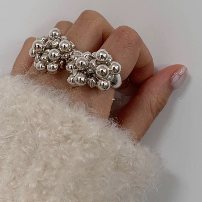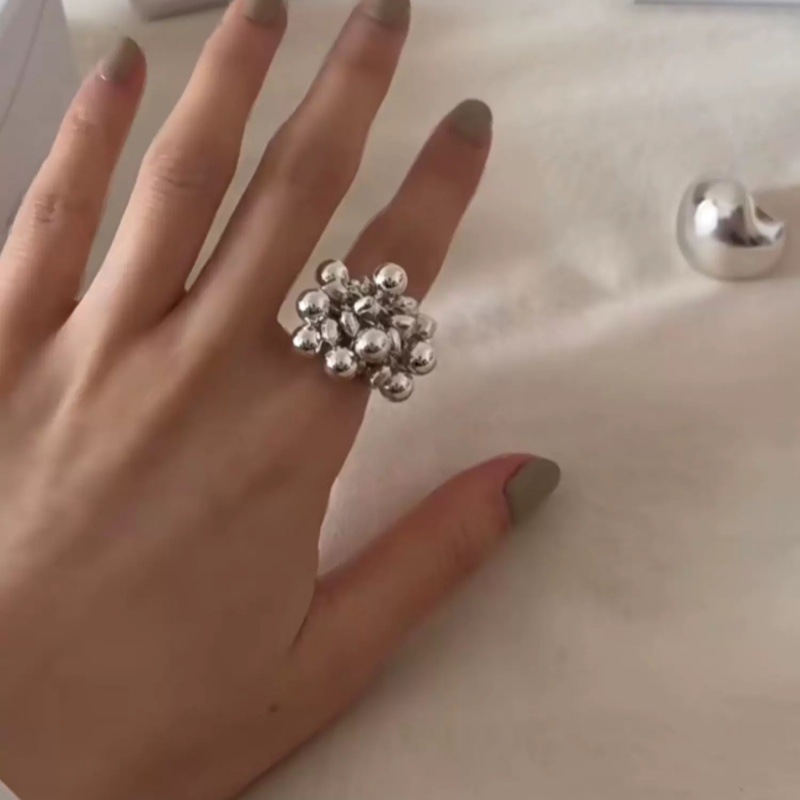 Korean Niche Inodore Same Style Heart Ball Shape Ring Women's Niche Design High-End Elegant Hand Jewelry