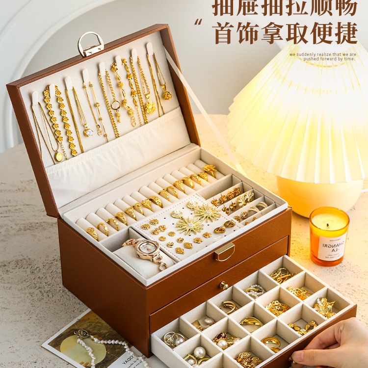 Color: ₪[anti-oxidation combination] maillard brown-three-layer drawer model + anti-oxidation jewelry bag*5 (eva material/no odor)
