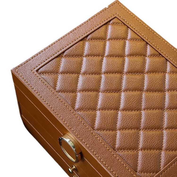 Color: ₪maillard brown-three-layer drawer model [leather surface + pearl velvet lining + lock]