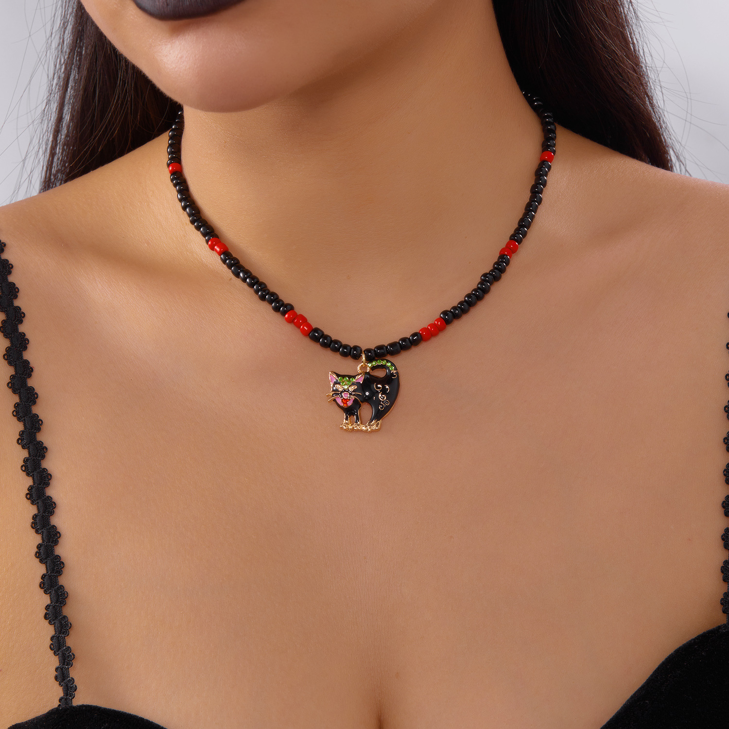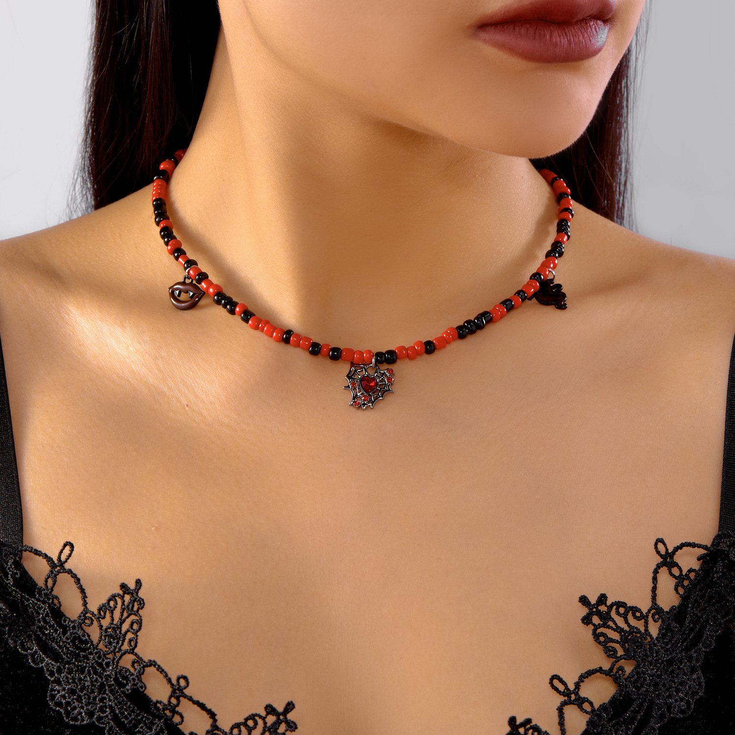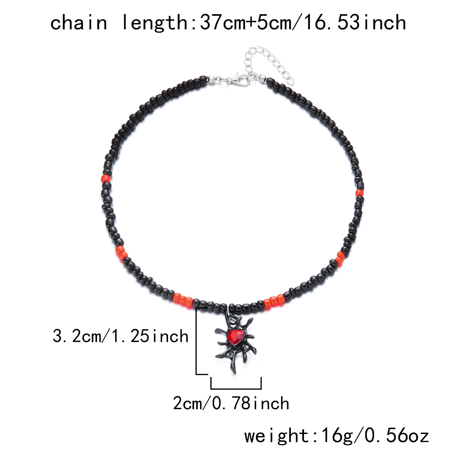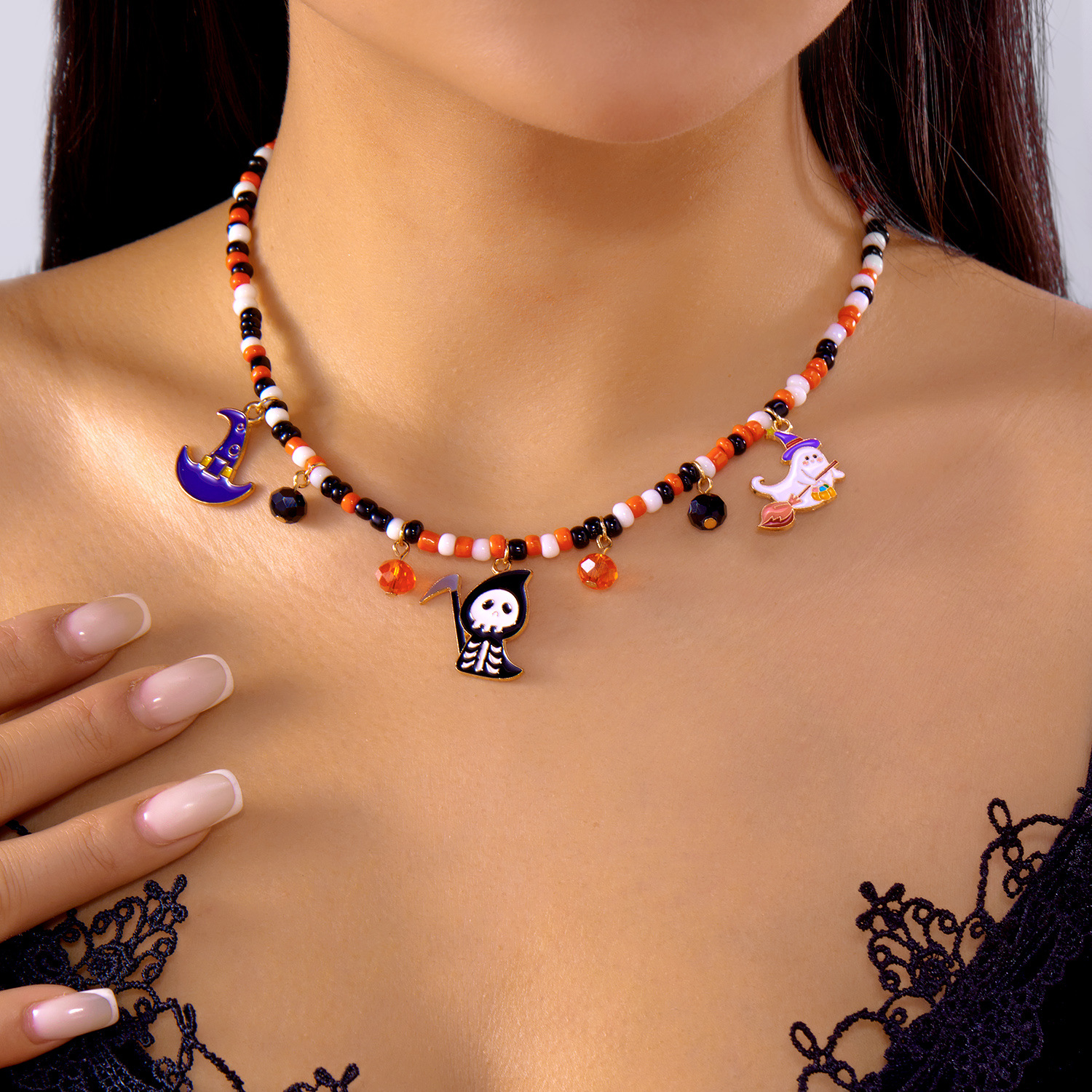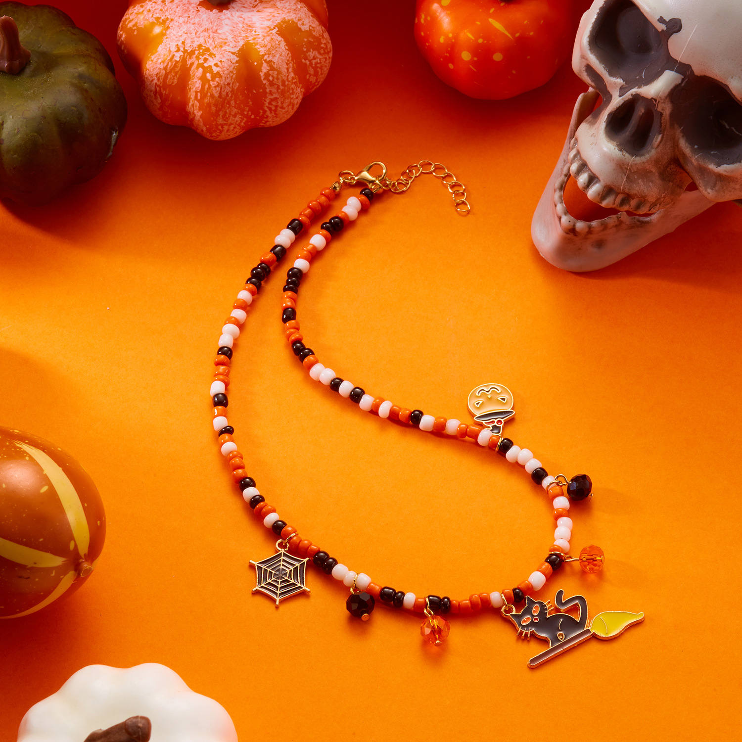 European and American Cross-Border Halloween Jewelry Pumpkin Color Horror Style Ghost Spider Pendant Handmade Rice Beads Beaded Necklace
