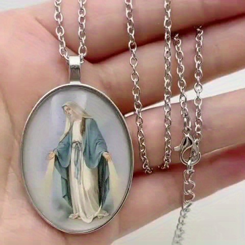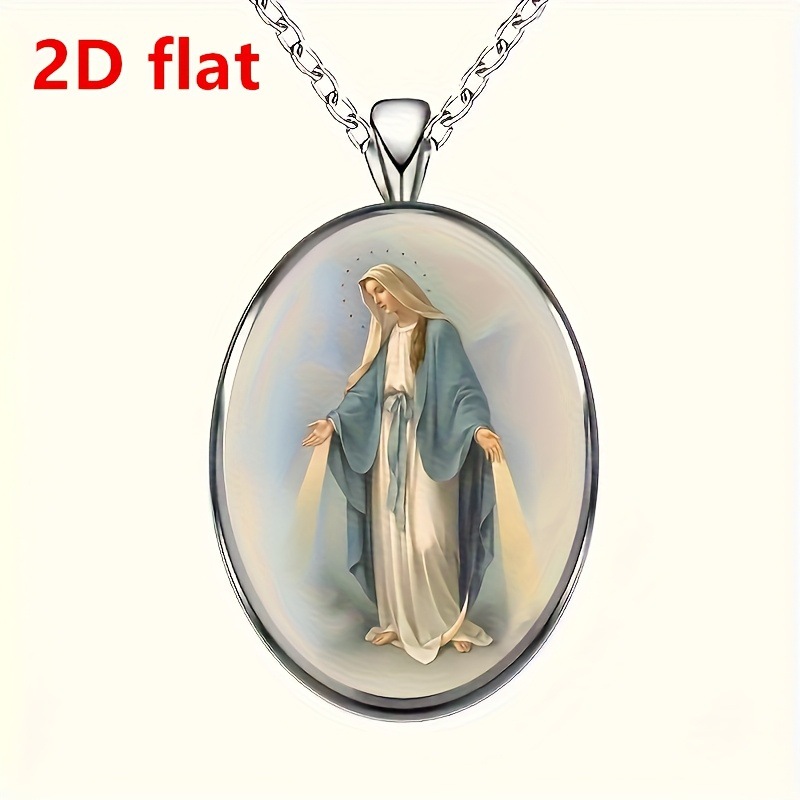 1Pc Goddess Glass Pendant Necklace-2D Flat Oval Alloy Charm for Wedding or Anniversary Gift,