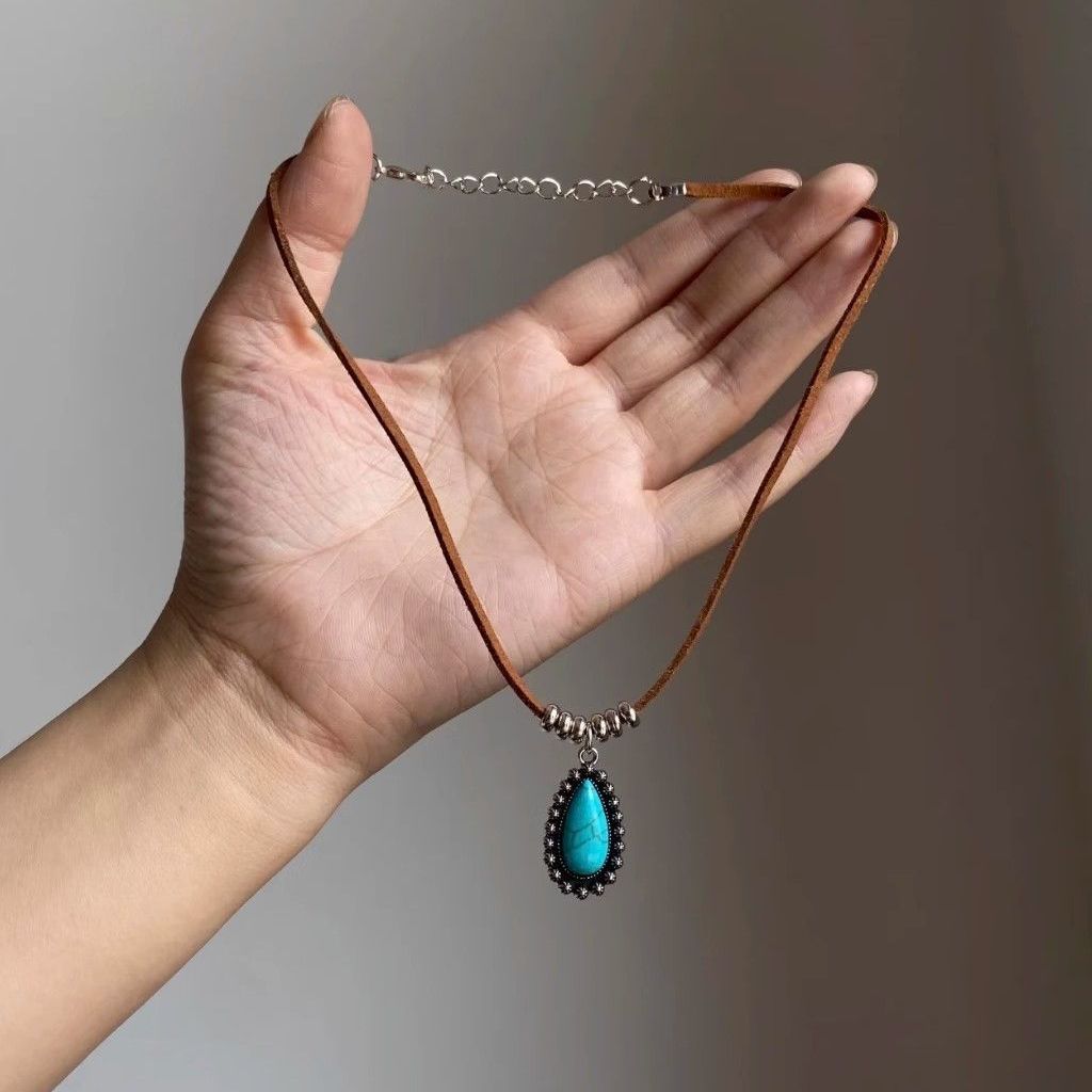 Vintage Bohemian Style Suede Necklace for Women, Layered Necklace, Wasteland Accessories, 2025 Trend, Same Style as on Xiaohongshu