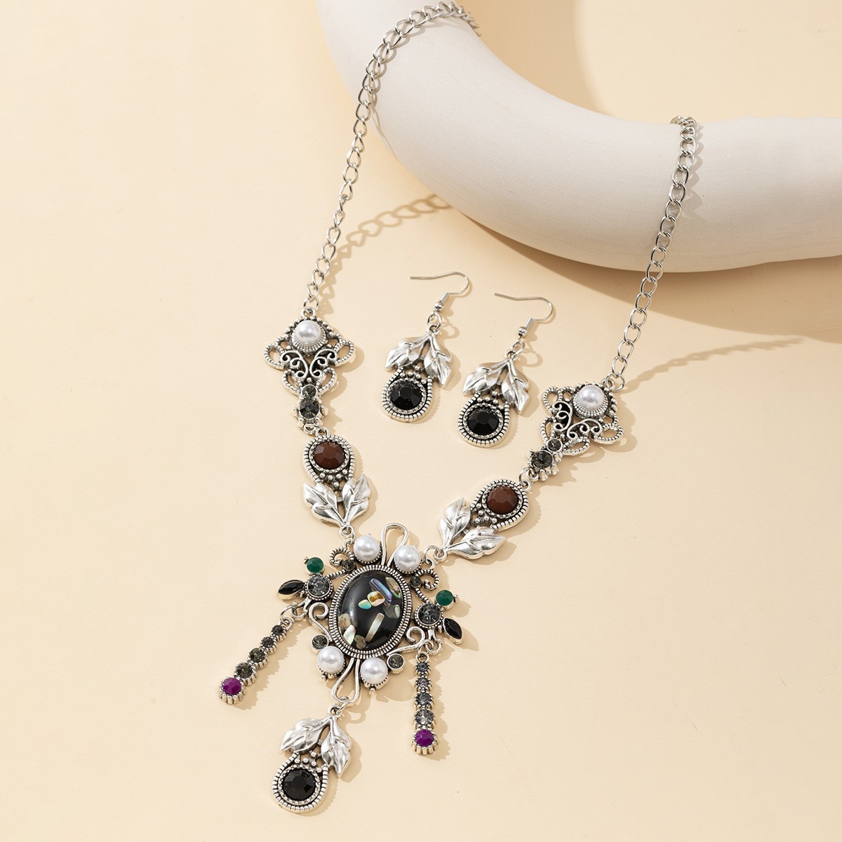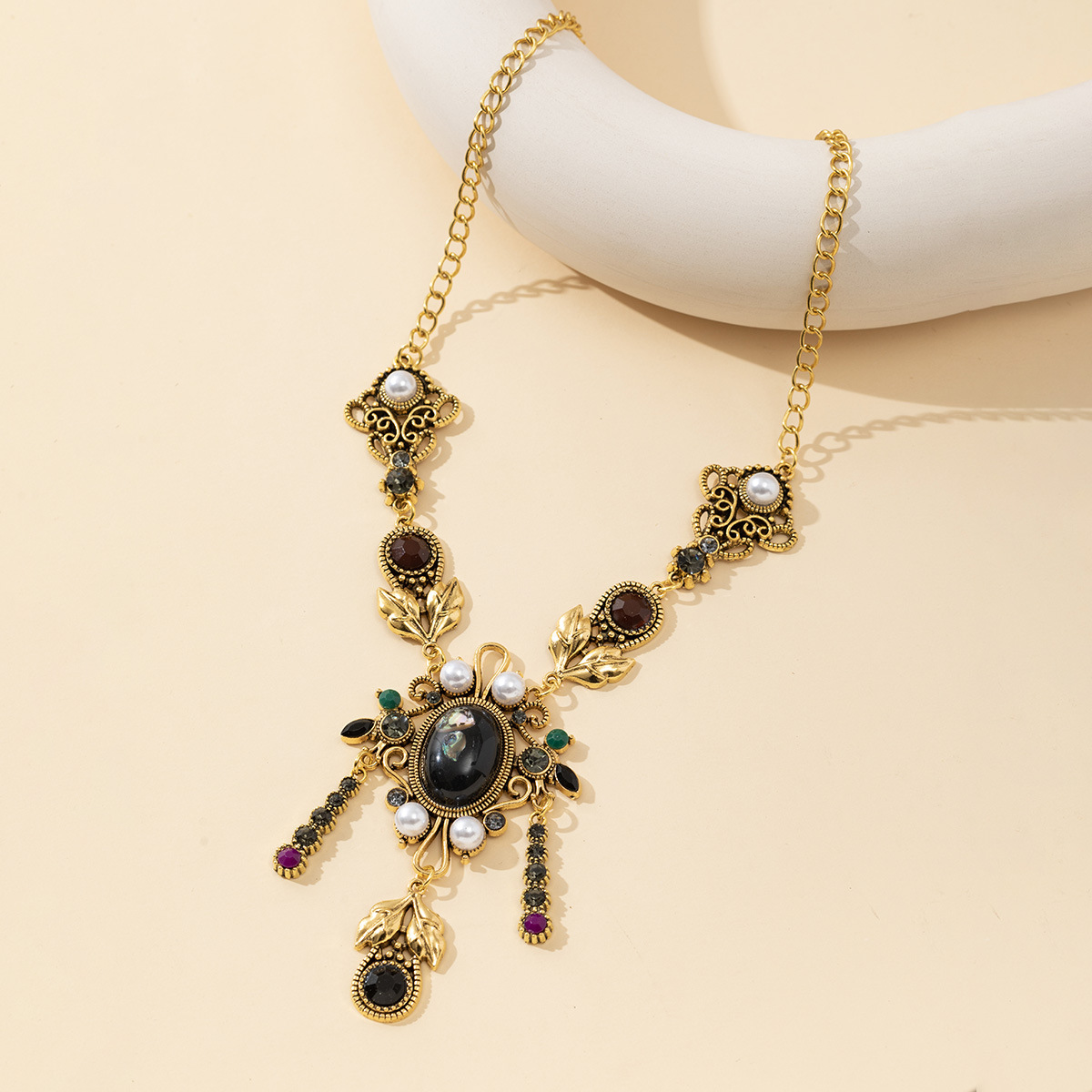 Palace Retro Style Colorfulful Rhinestone Pearl Necklace Bohemian Tassel Dual-Purpose Forehead Chain Exotic Ethnic Style