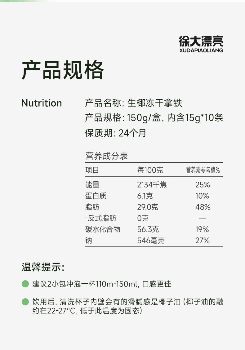 Xu Da's Beautiful Raw Coconut Freeze-Dried Latte Office Fitness Coffee Boutique Refreshing Instant Coconut Milk Coffee Powder
