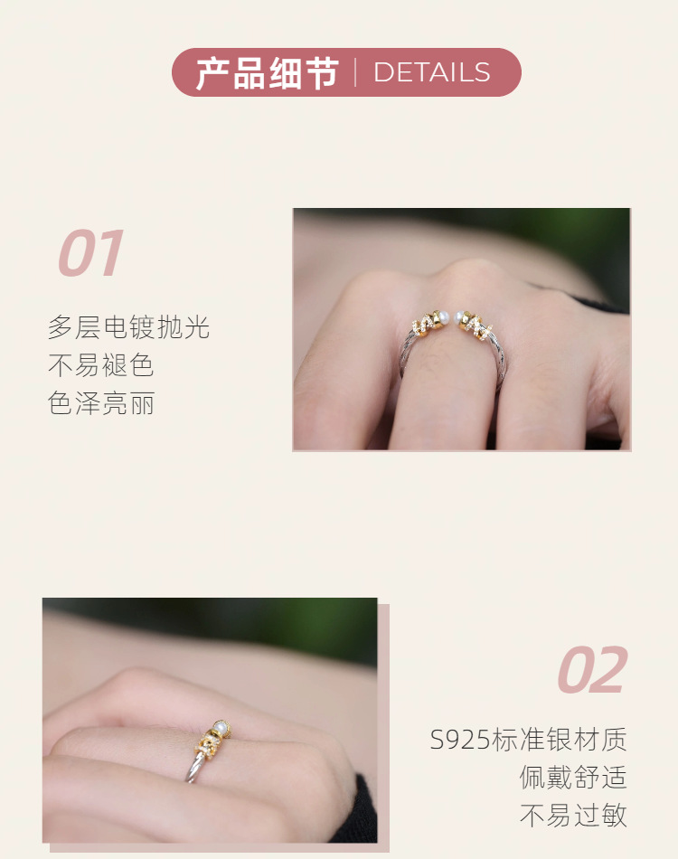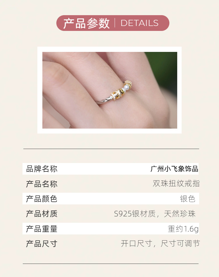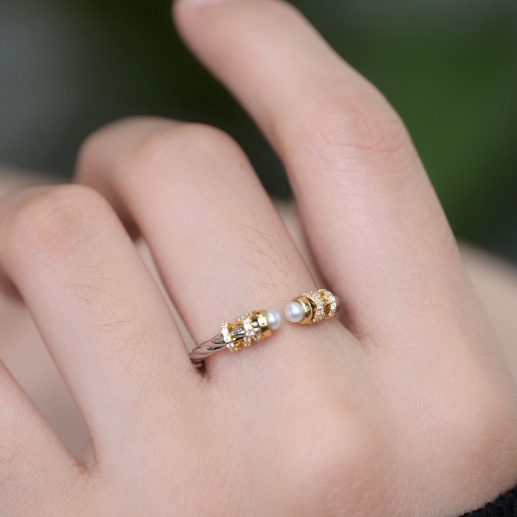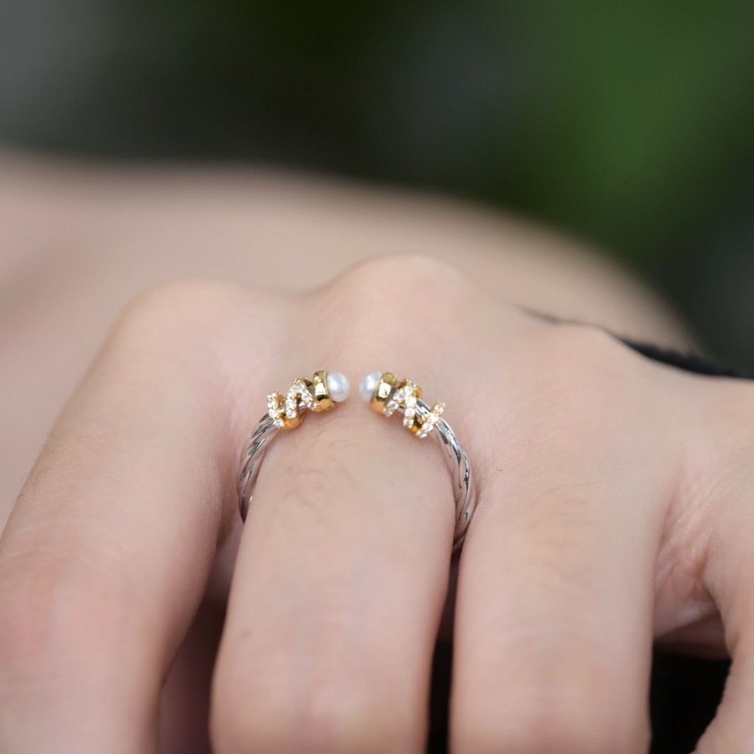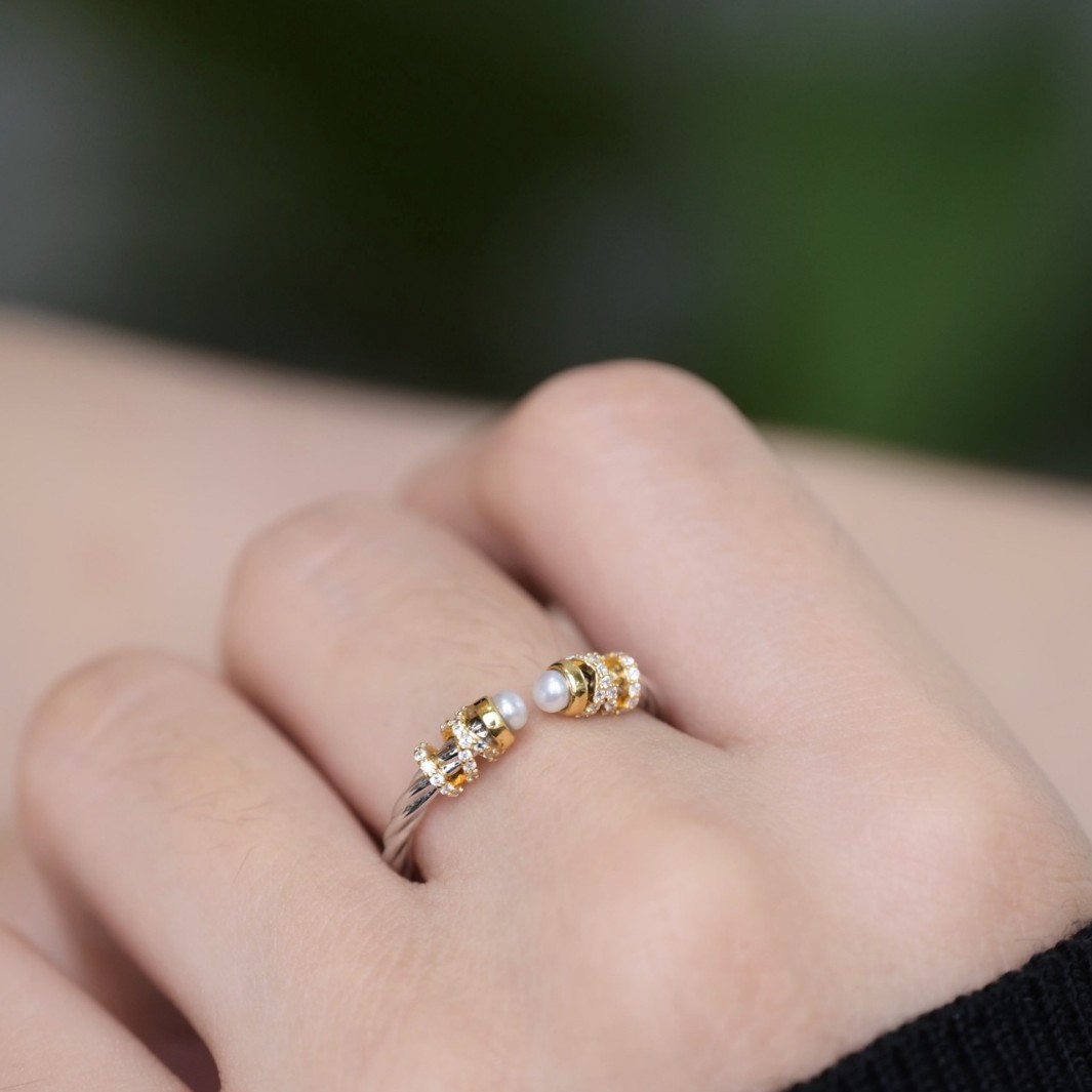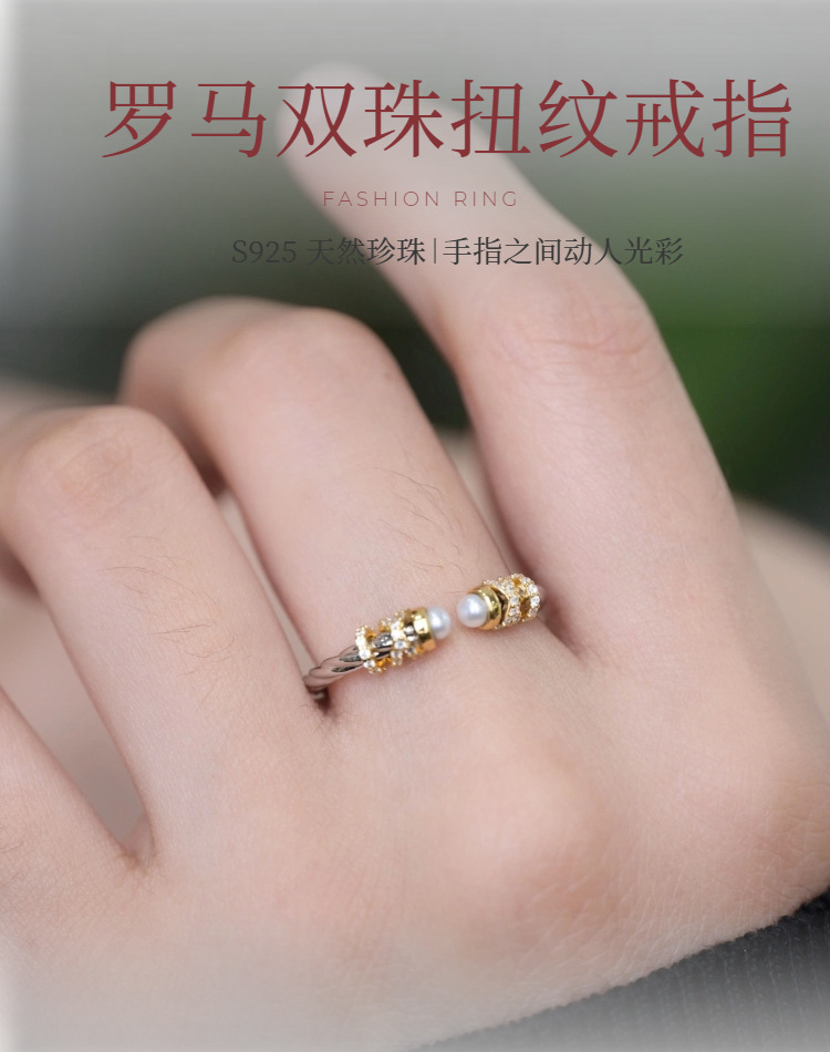 Roman Double Bead Twist Ring S925 Silver Natural Pearl Ring