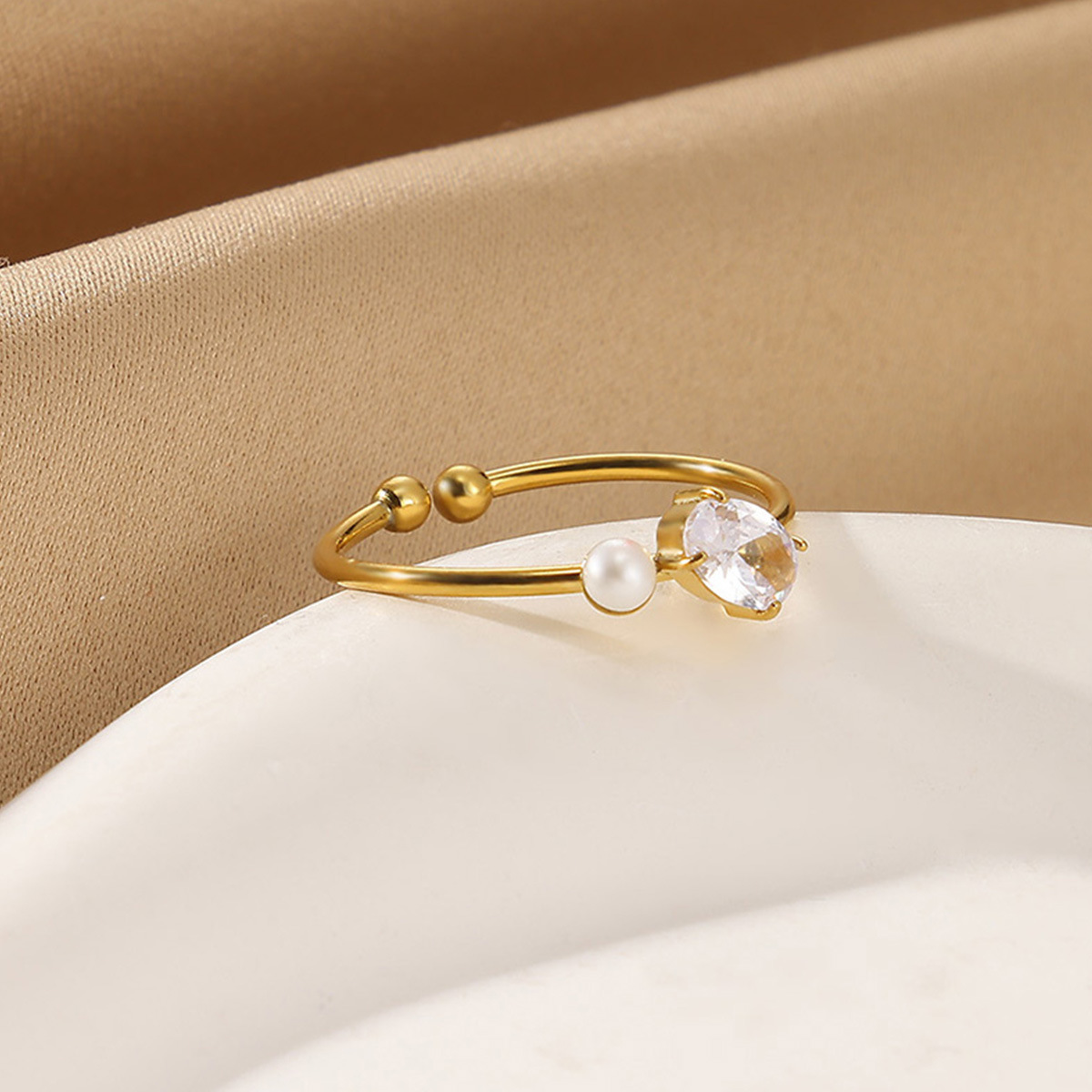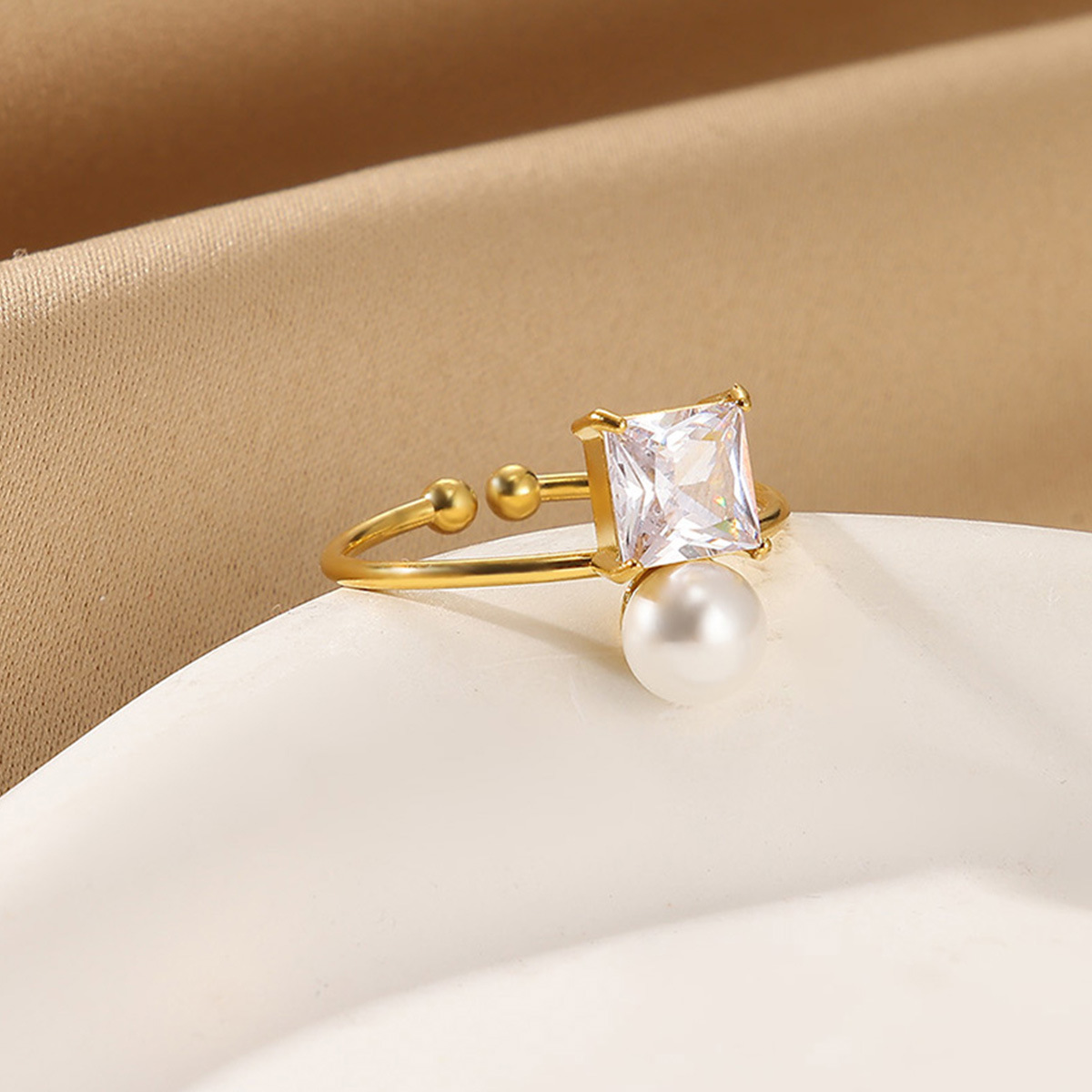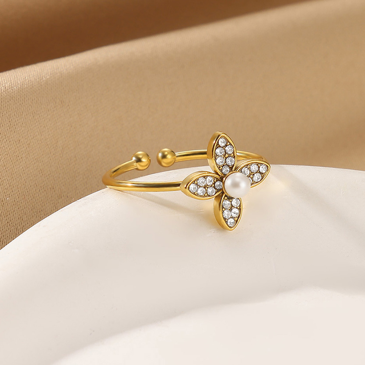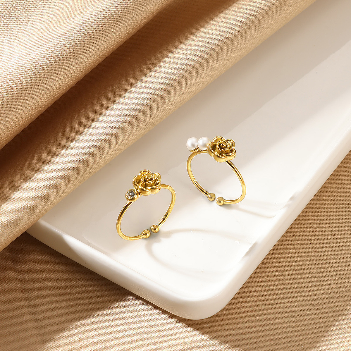 Cross-Border European and American Light Luxury Rose Diamond Ring Mixed Batch Pearl Ring Women's Leaf Geometric Chain Joint Ring