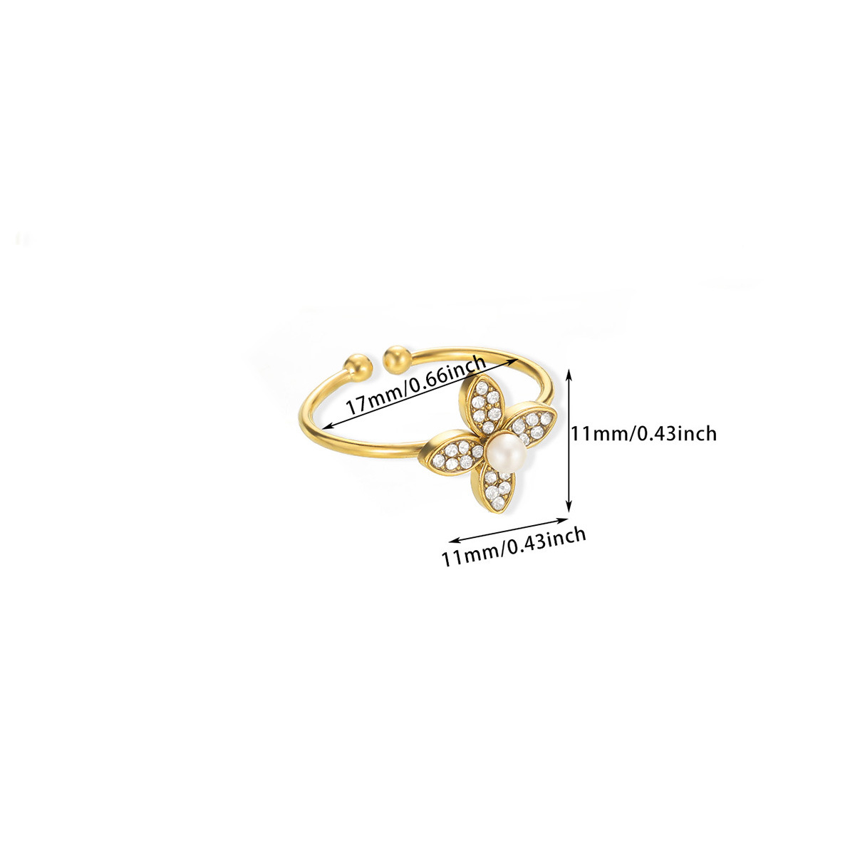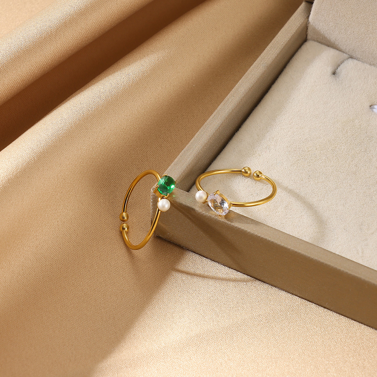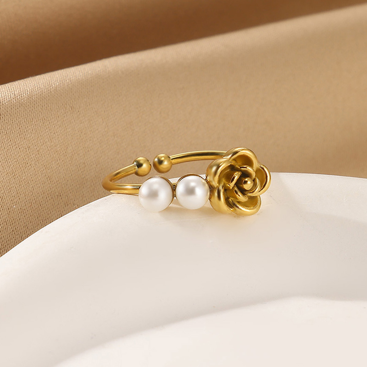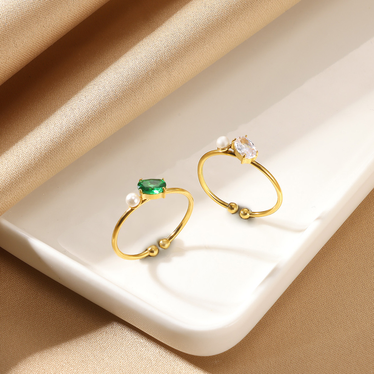 Cross-Border European and American Light Luxury Rose Diamond Ring Mixed Batch Pearl Ring Women's Leaf Geometric Chain Joint Ring