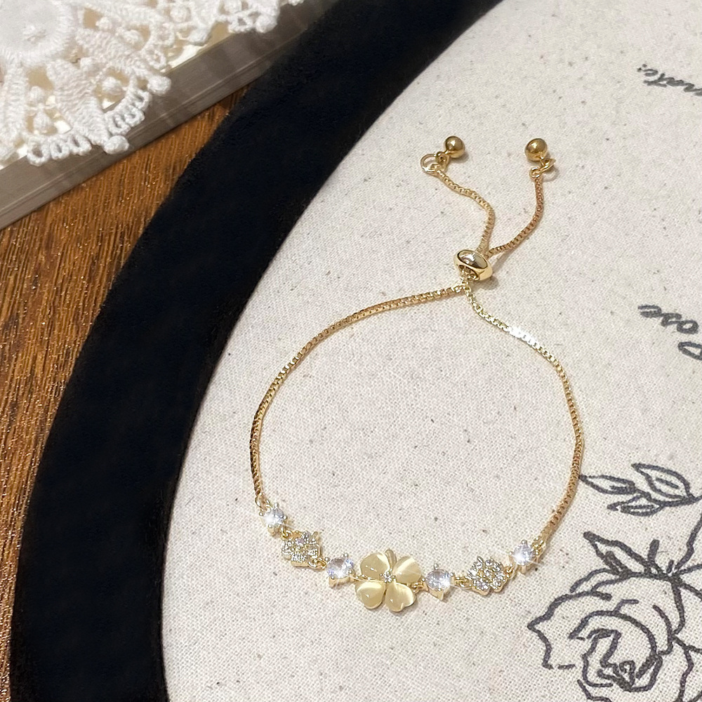 Color: D-241-rose gold pink four-leaf flower bracelet