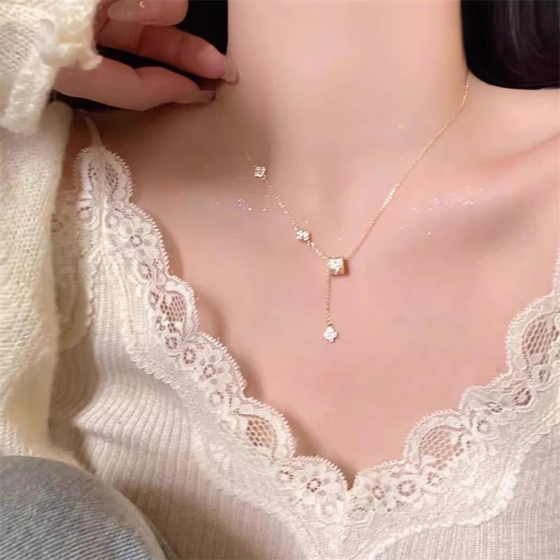 Light Luxury and High-End Small Waist Four-Leaf Clover Pendant Necklace for Women, Simple and Versatile Necklace, Niche Design Clavicle Chain