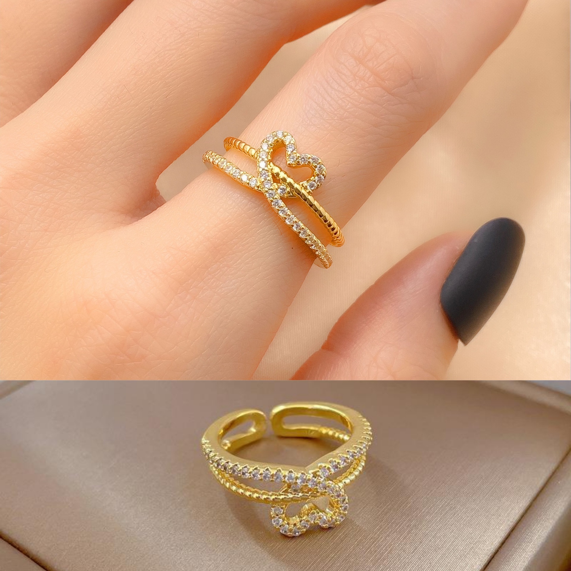 Cross-Border E-Commerce Popular Diamond-Encrusted Ring, Exquisite and High-End Love Ring, Simple and Fashionable Open-Ended Adjustable Bracelet