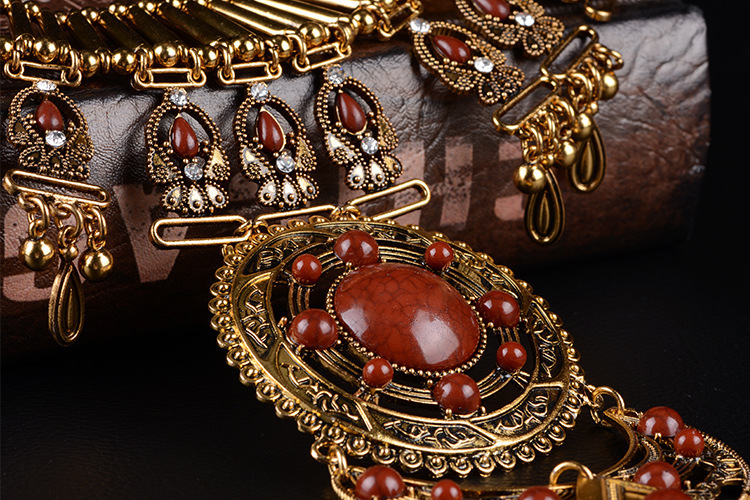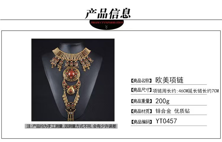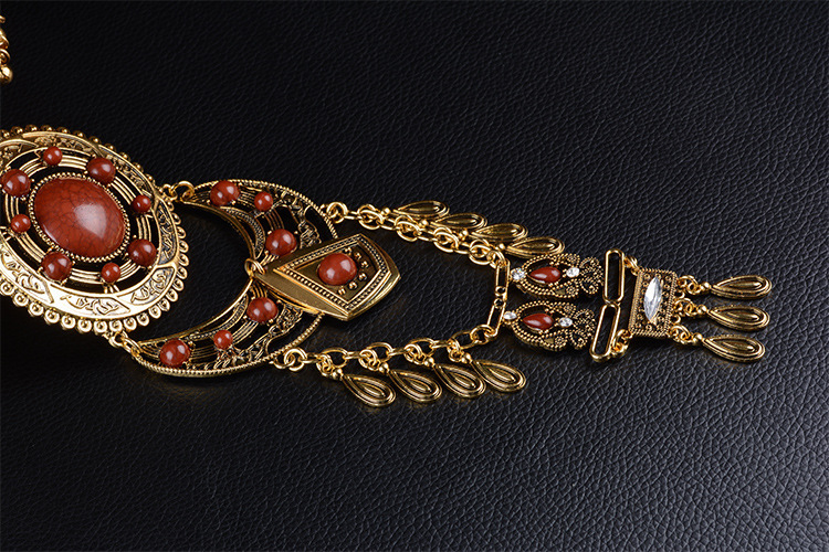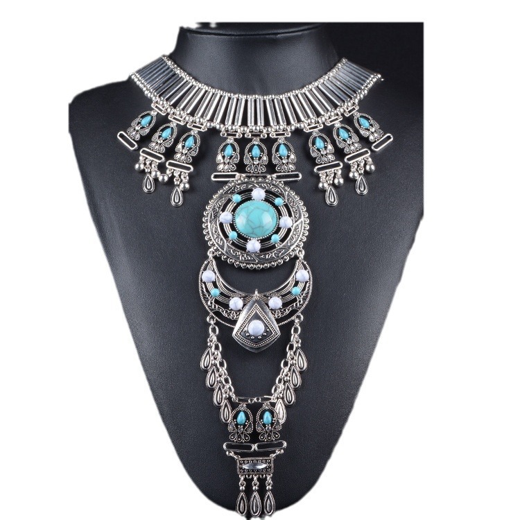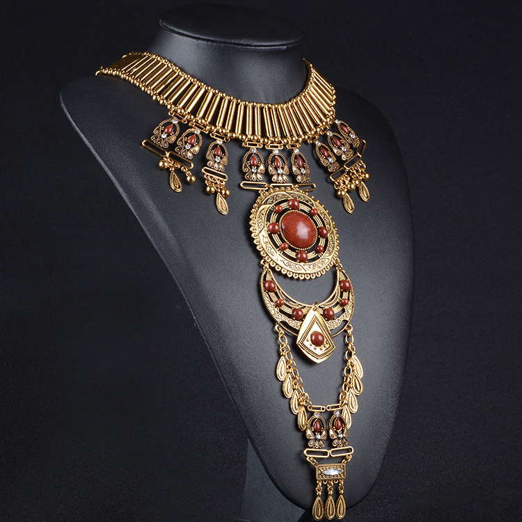 European and American Big-Name Bohemian Necklace Body Chain Retro Gemstone Exaggerated Accessories Women's Ethnic Style Necklace New Style Women