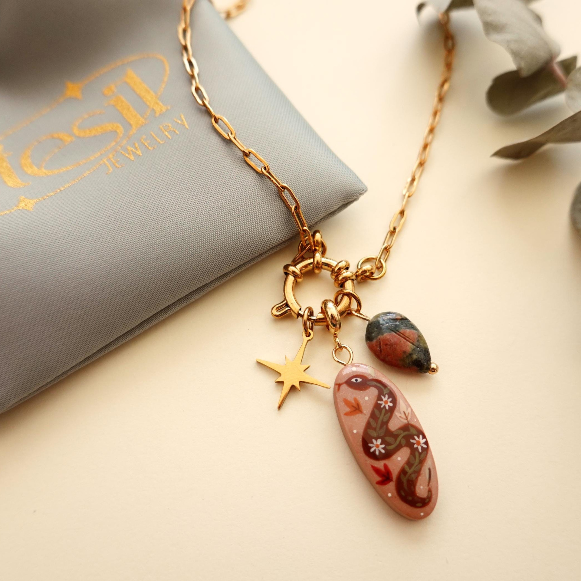 Color: Love living mouth necklace gold