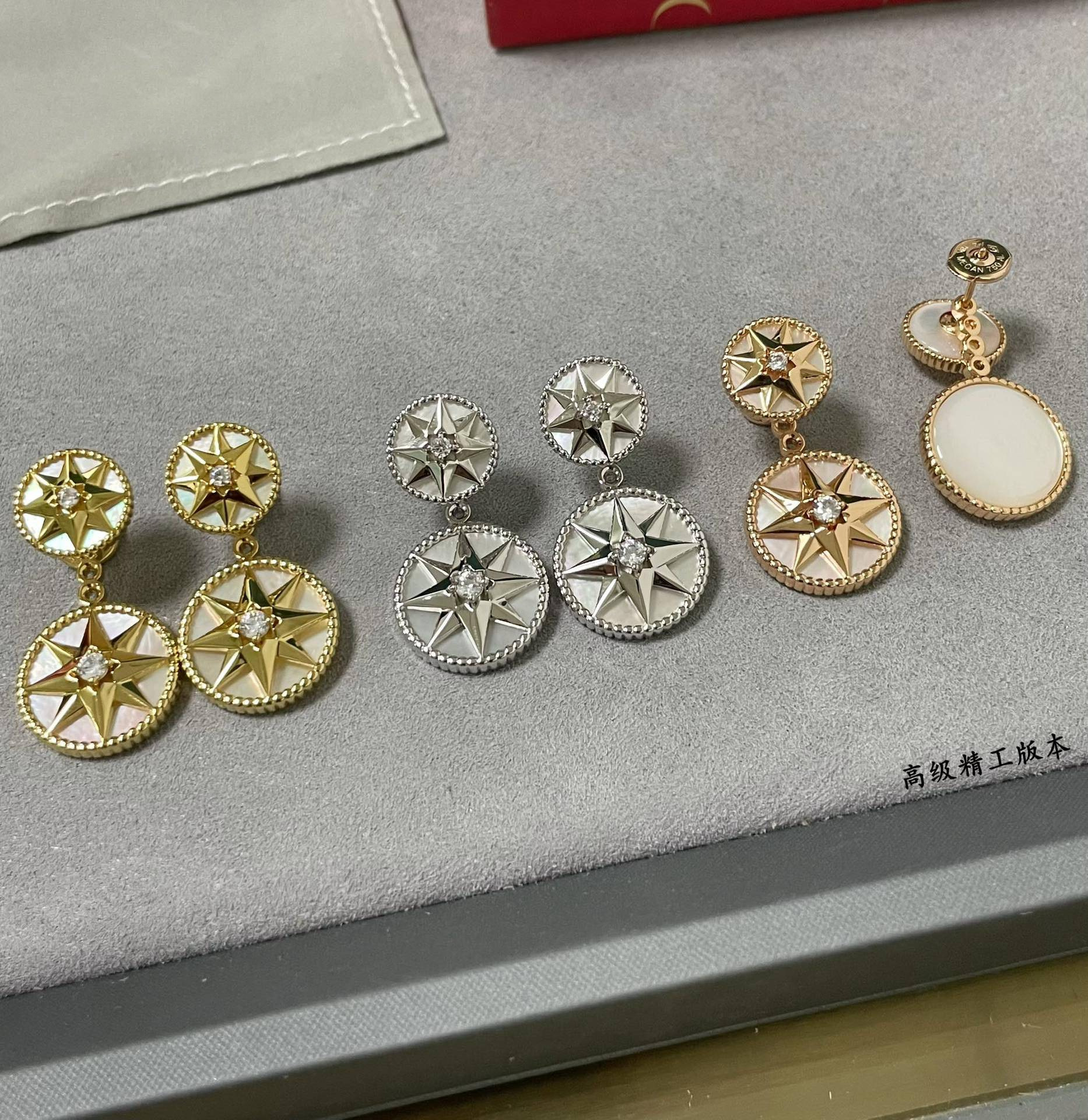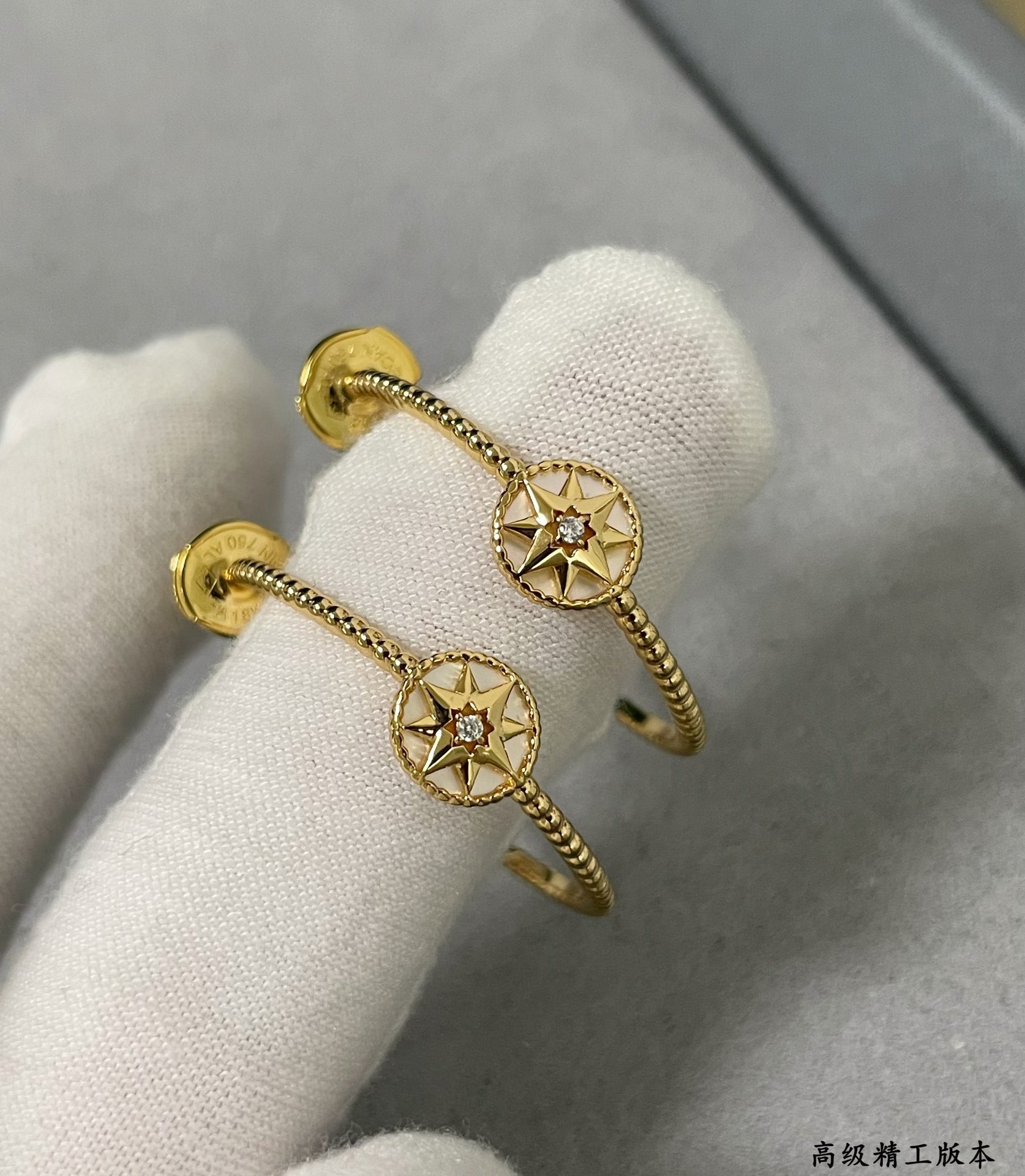Color: White gold and mother-of-pearl compass earrings