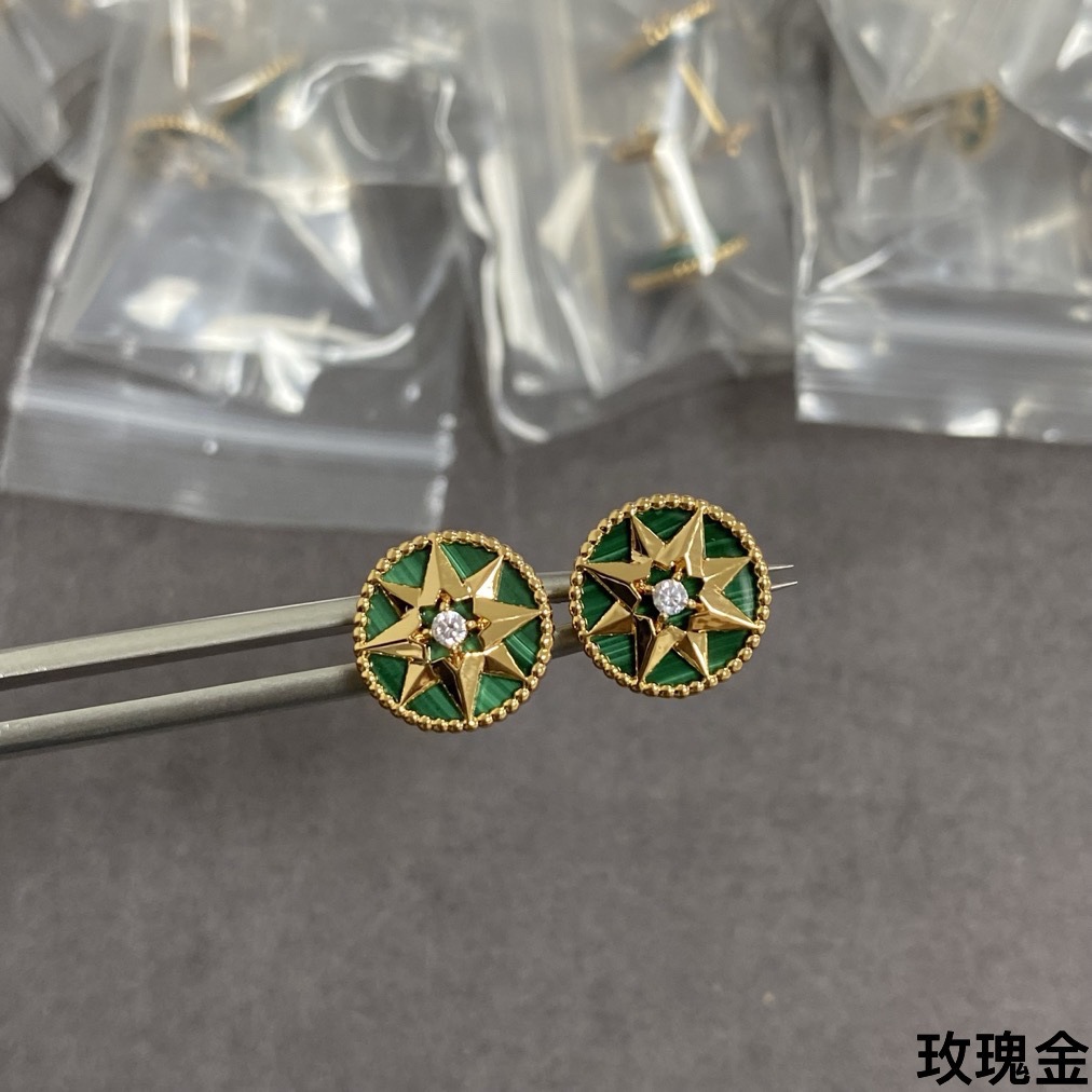 Color: Rose gold malachite compass earrings