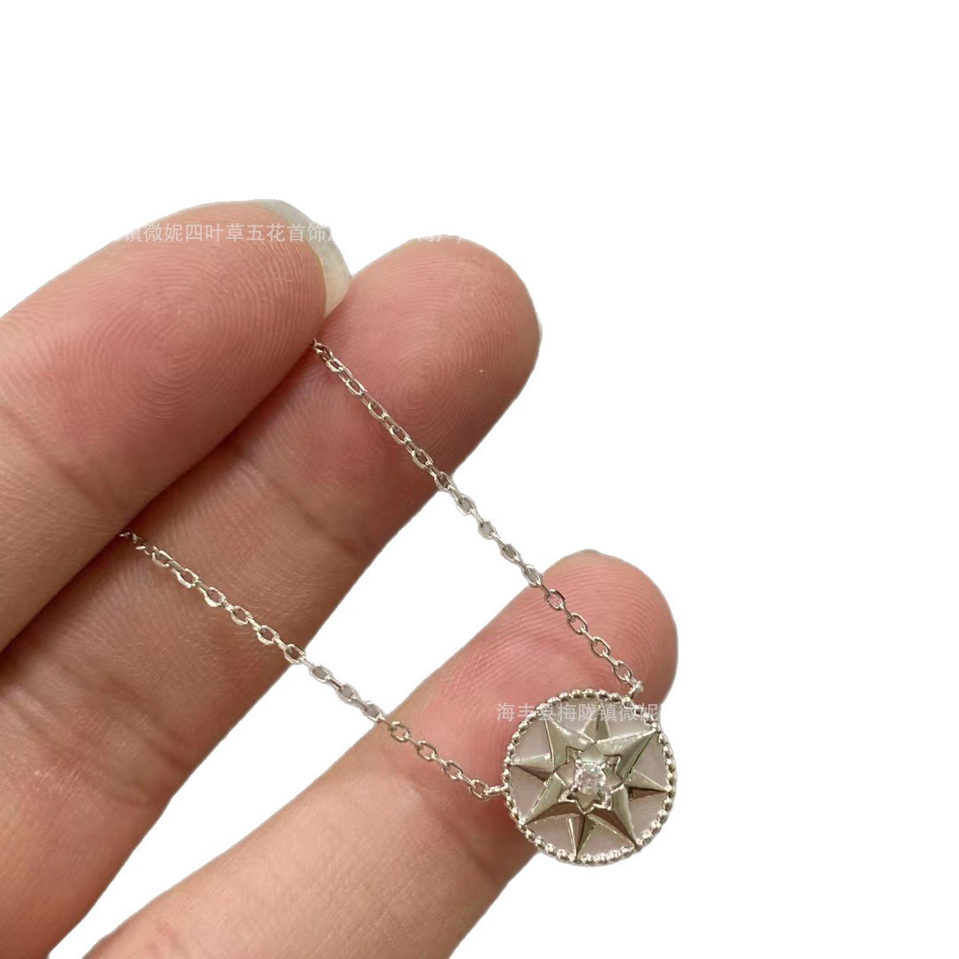 Color: White gold and mother-of-pearl compass necklace