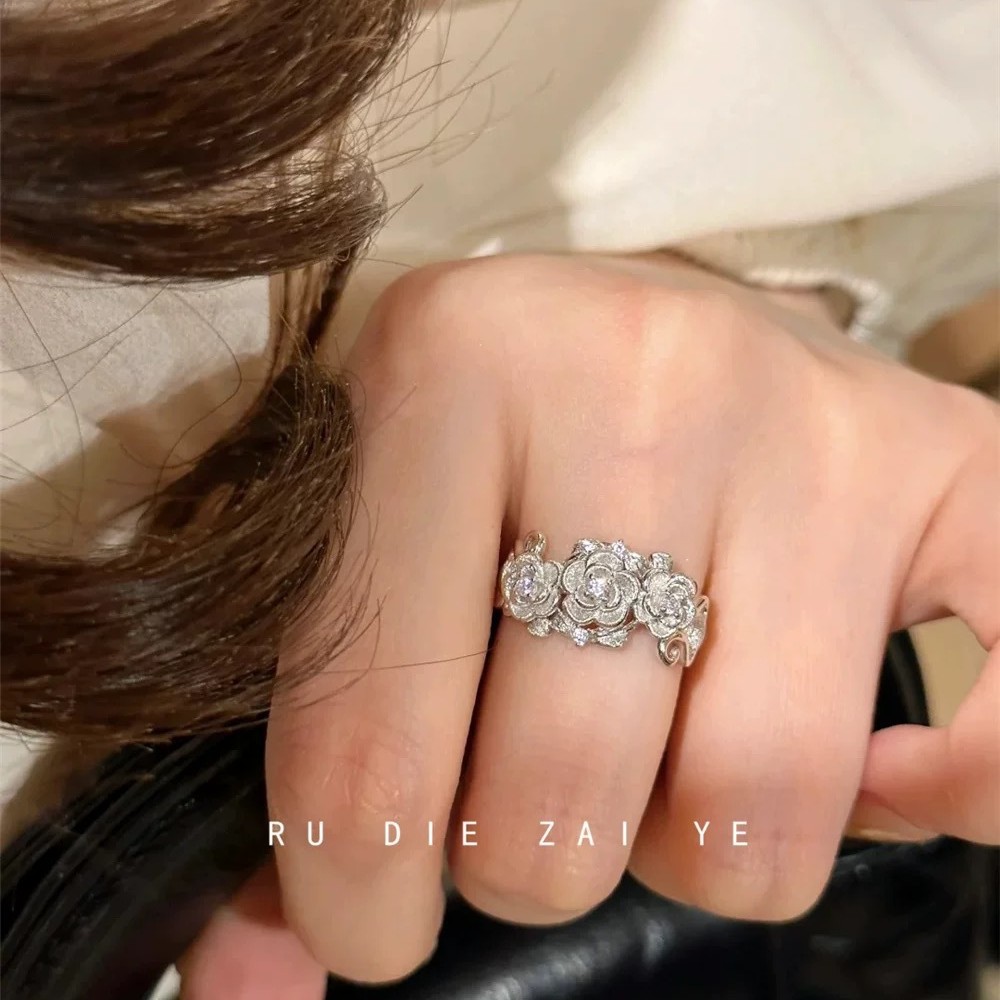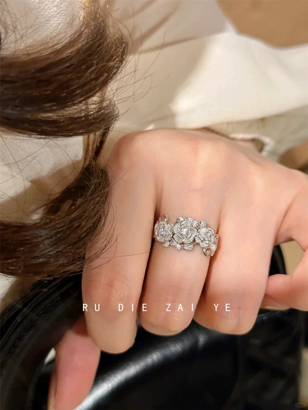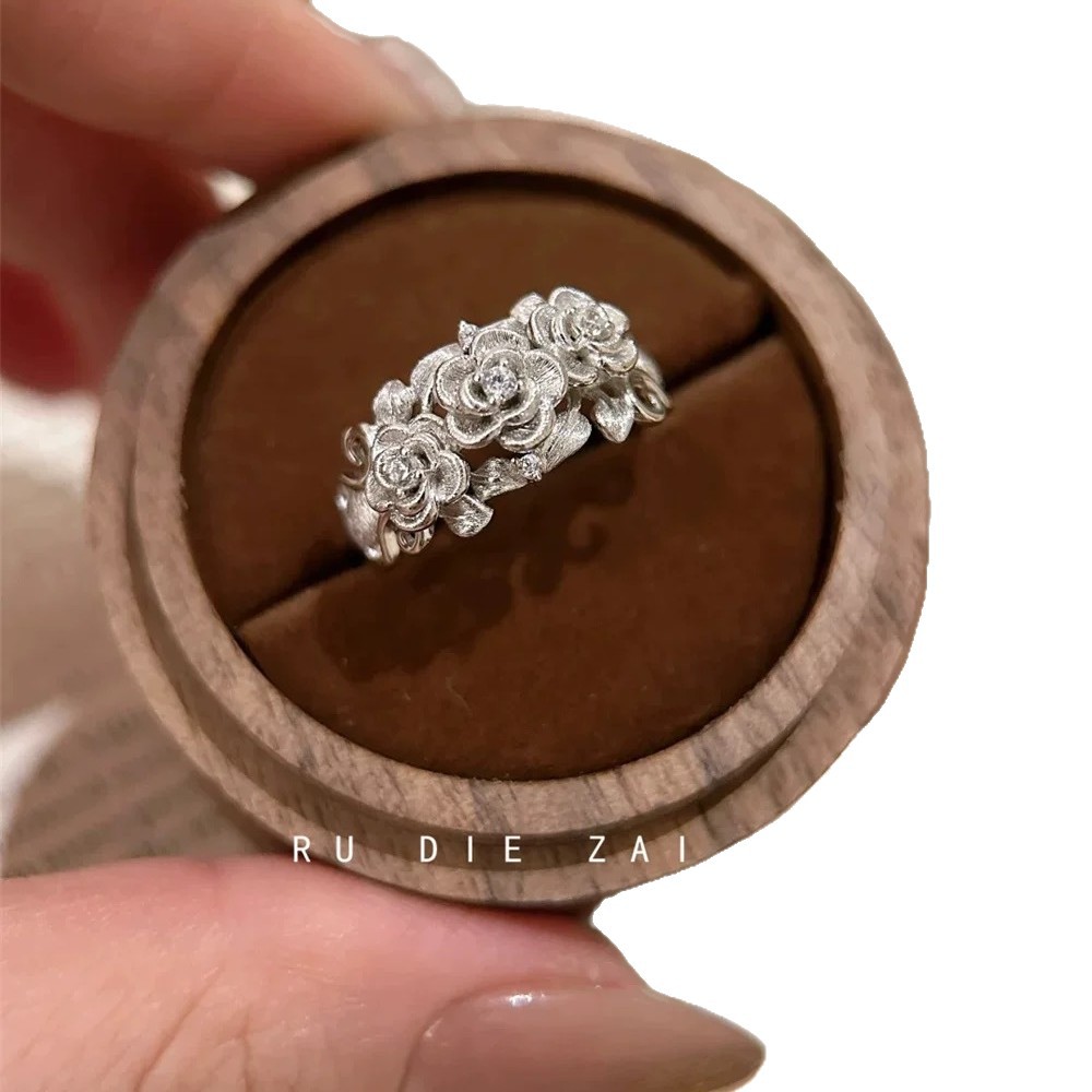Vintage Silver Brushed Rose Flower Ring Retro Fashion Personality Temperament Ring Trendy Versatile Jewelry