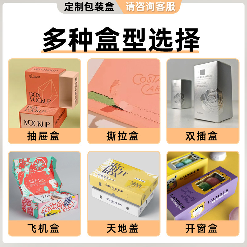 Packaging Box Customization Cosmetic Packaging Color Box Small Single Carton Packaging High-End Buckle Bottom Box White Cardboard Box Customization