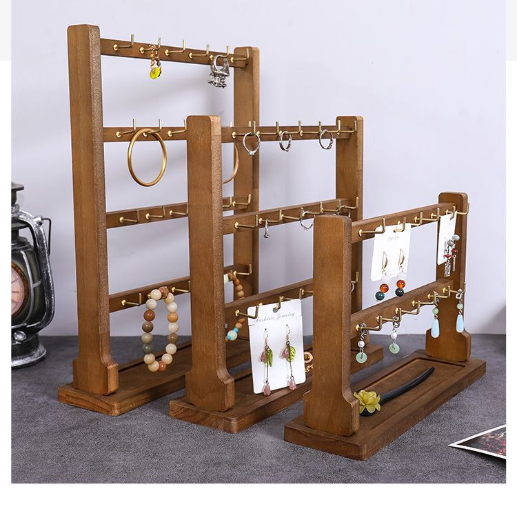 Solid Wood Keychain Earring Display Rack Storage Earrings with Hooks Jewelry Earrings Jewelry Rack Necklace Bracelet Props