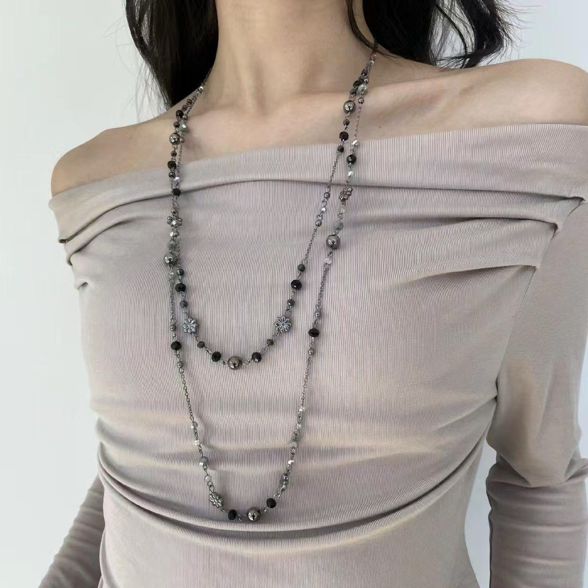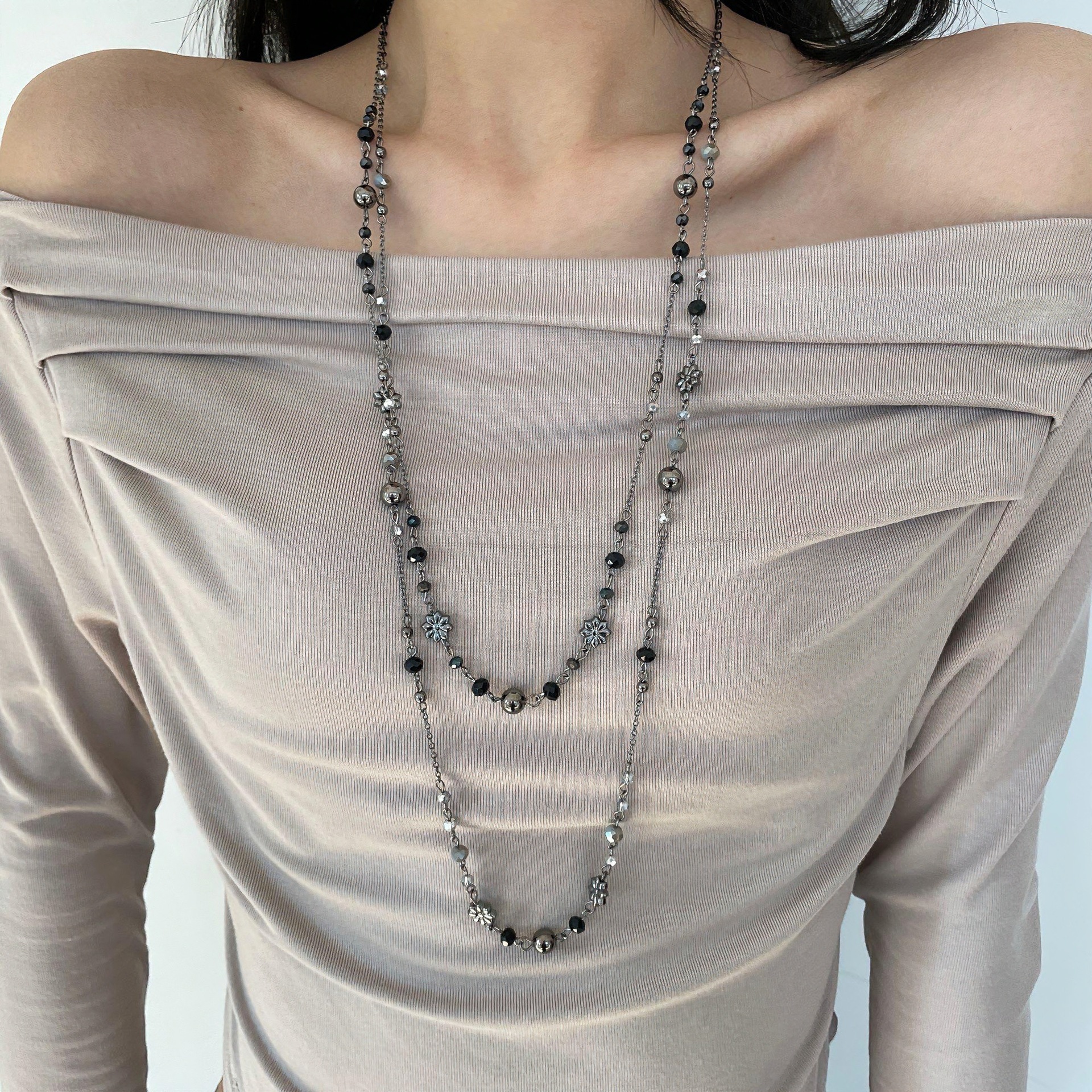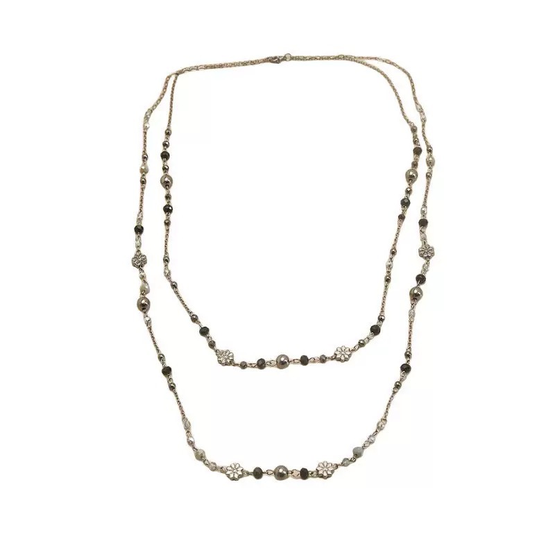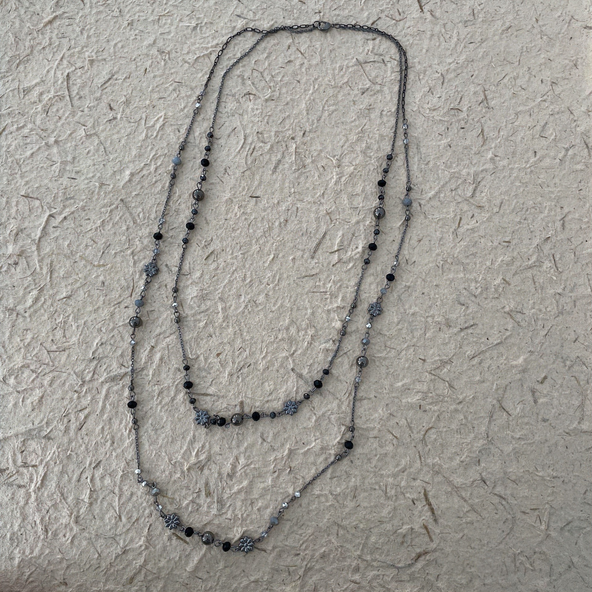 Color: Gun black distressed daisy beaded necklace