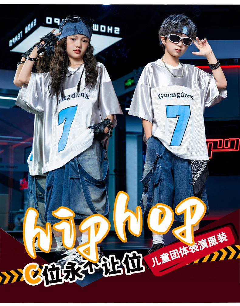 Color: A718 silver shiny leather short sleeves + b385 blue gradient denim shorts