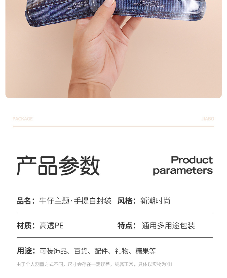 Specifications and models: Denim tote bag (size 18*17+4)