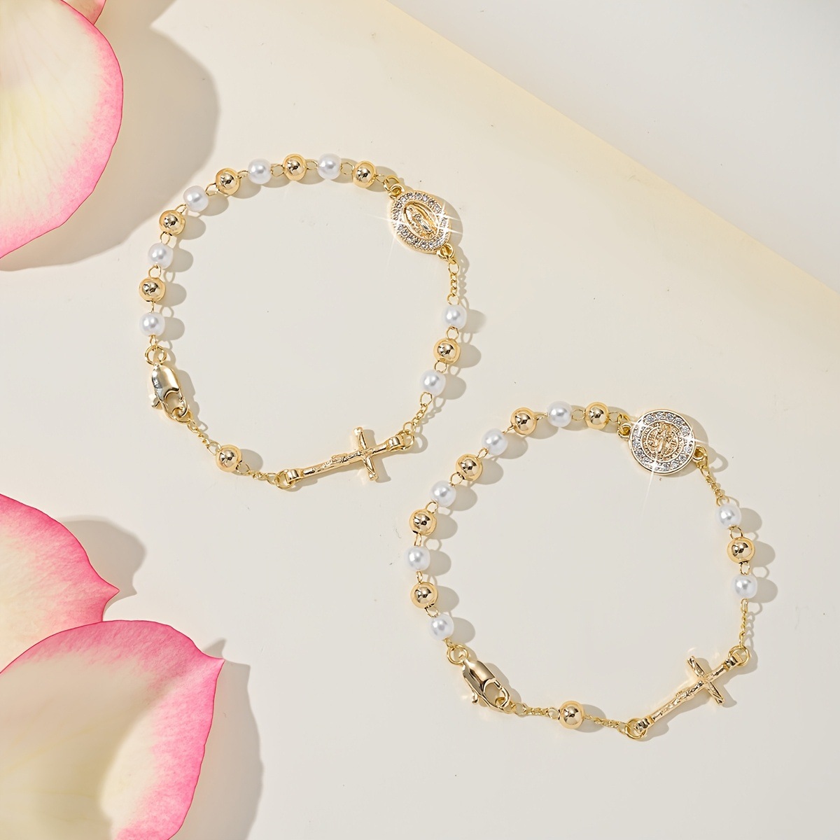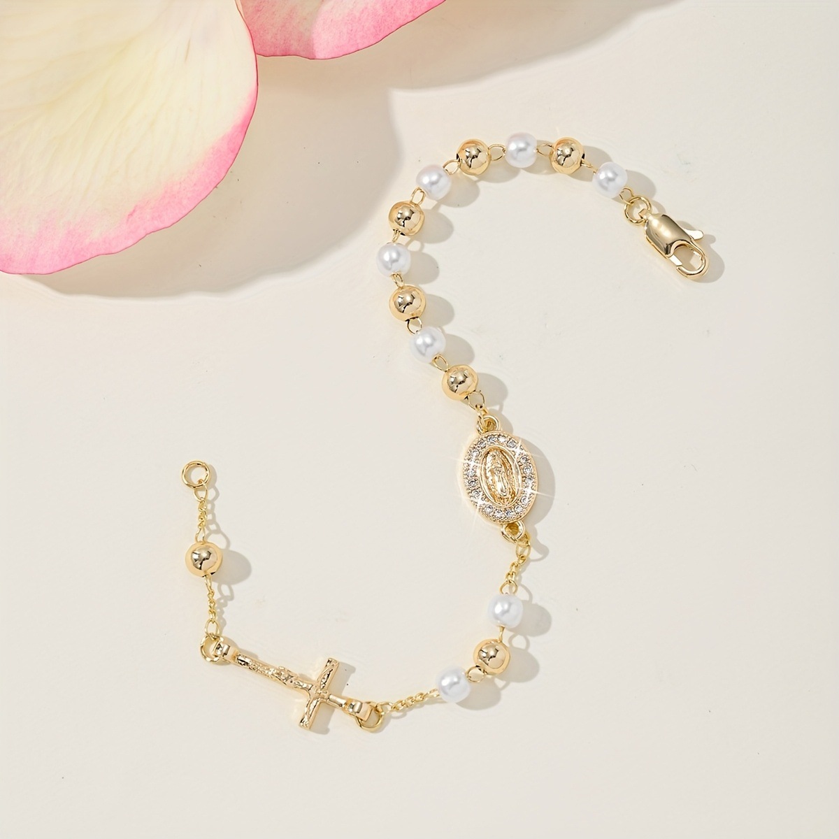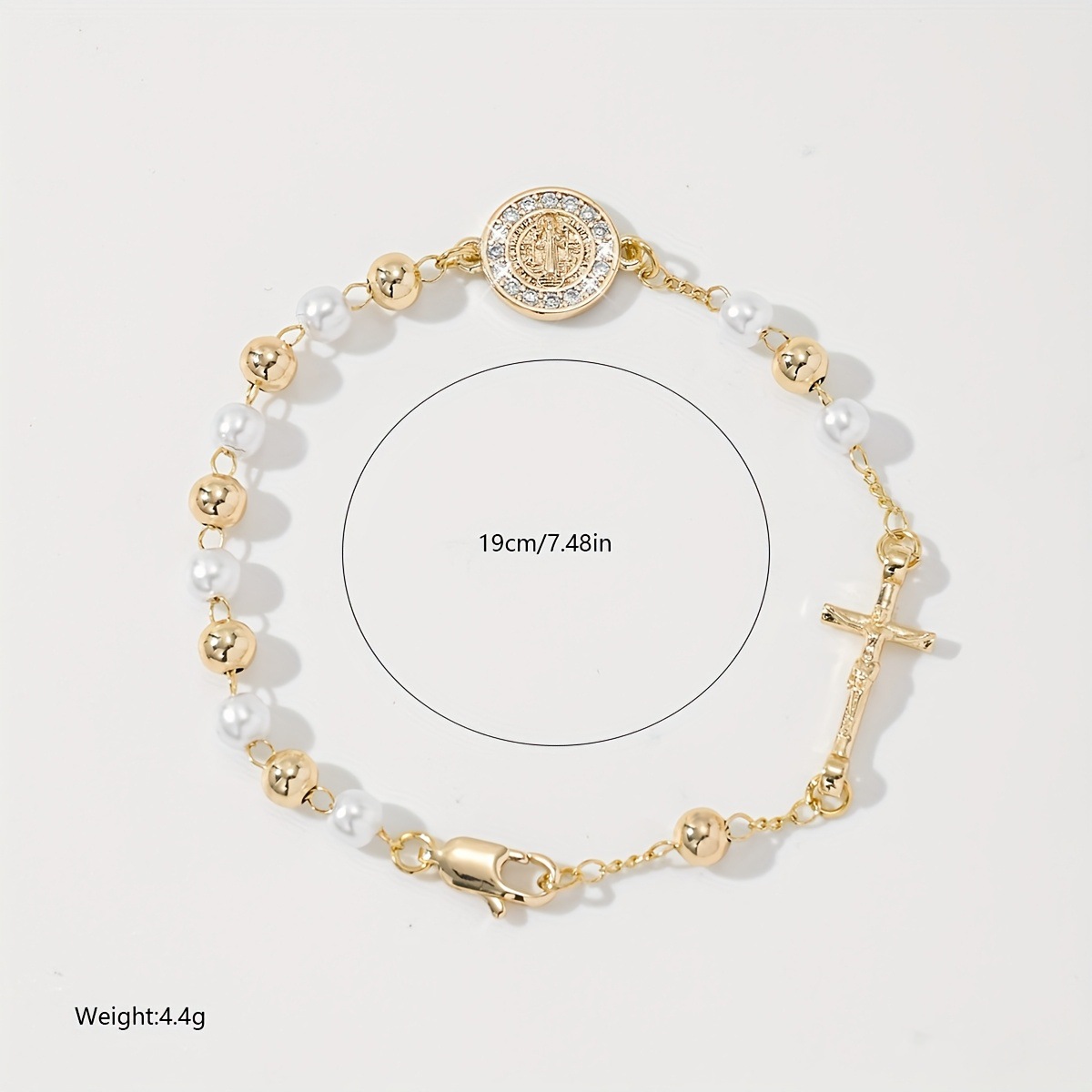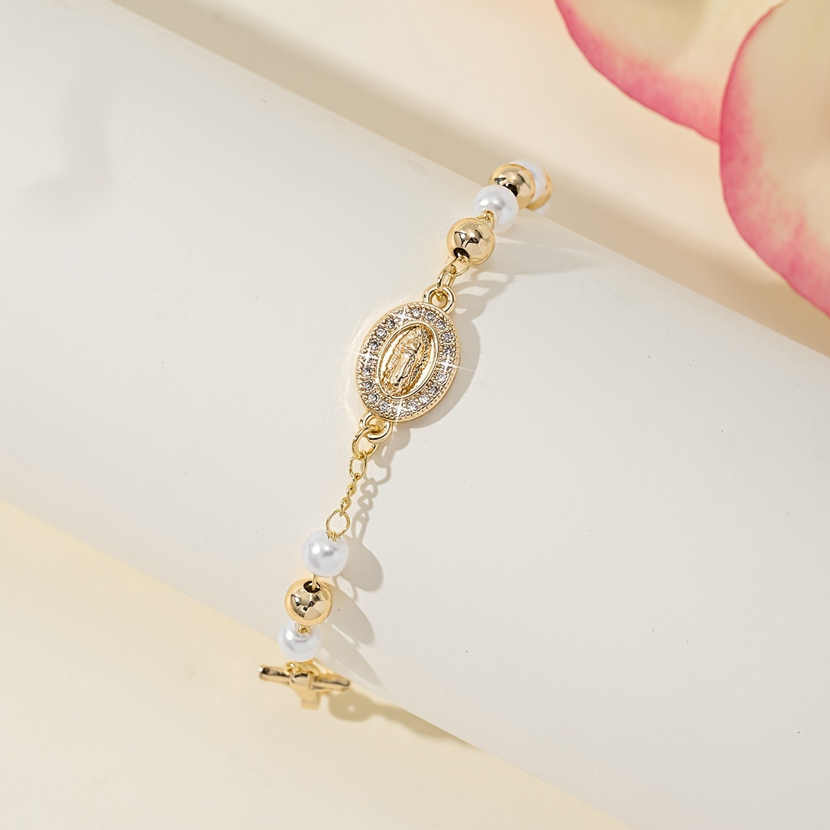 Cross-Border Cross Micro-Encrusted Bead Chain, Non-Fading Diamond-Encrusted Women's Color-Preserving Copper Color Bracelet, Light Luxury and High-End Gift