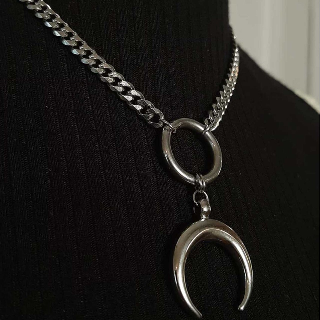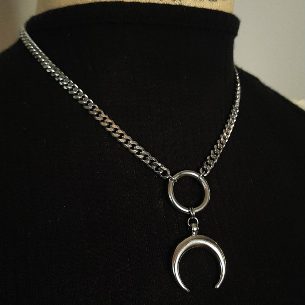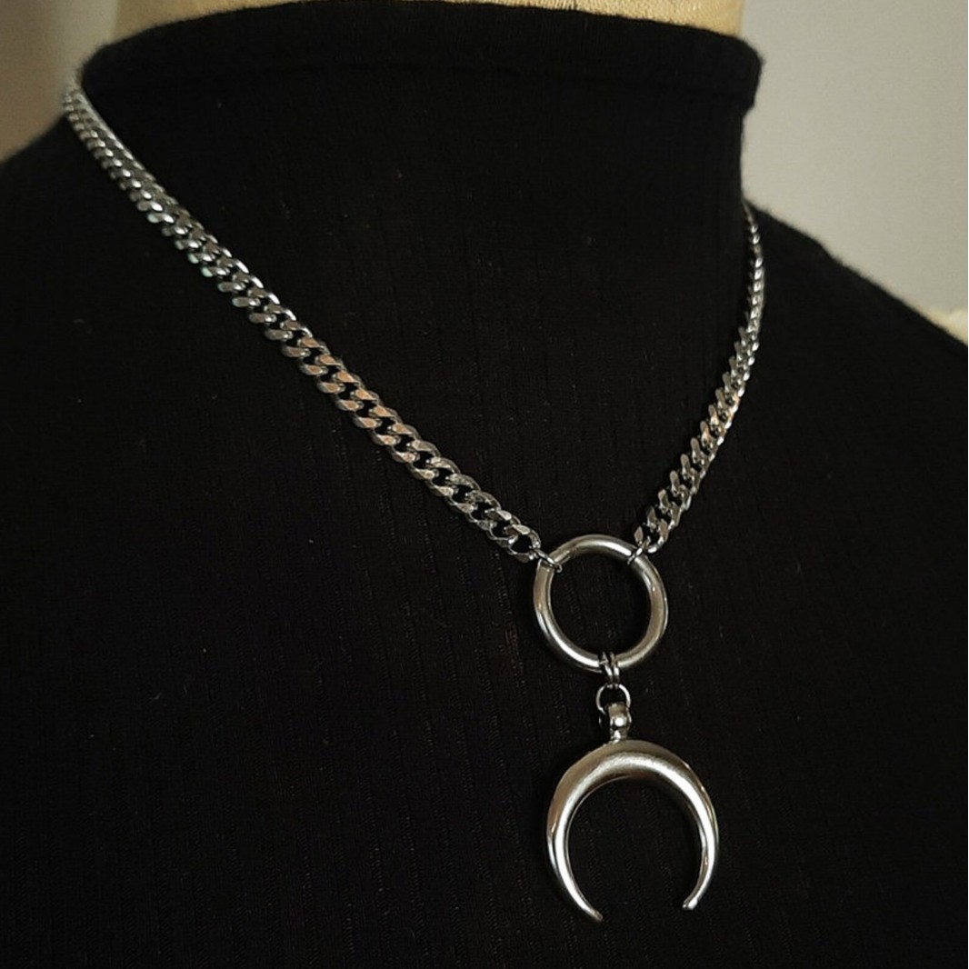 Junyan Cross-Border Crescent Moon O-Shaped Ring Chain Necklace Alternative Gothic Heavy Necklace Celestial Jewelry