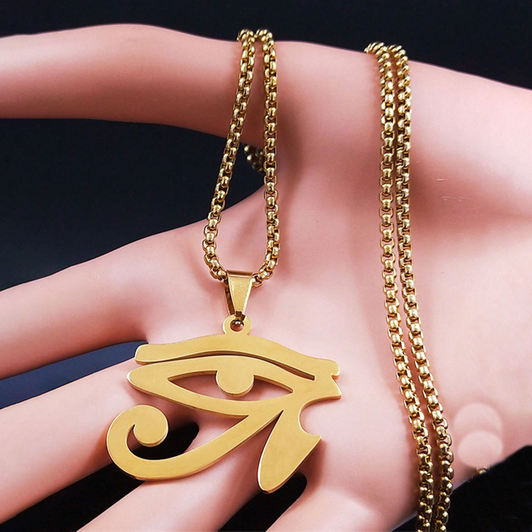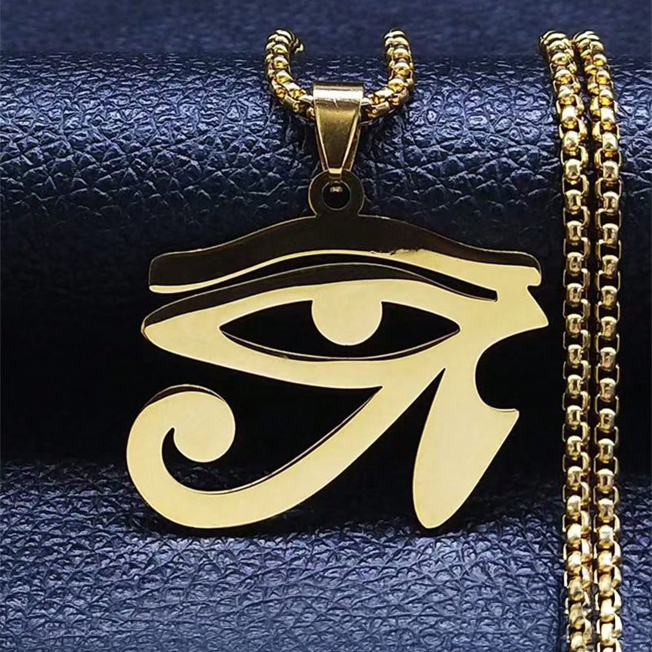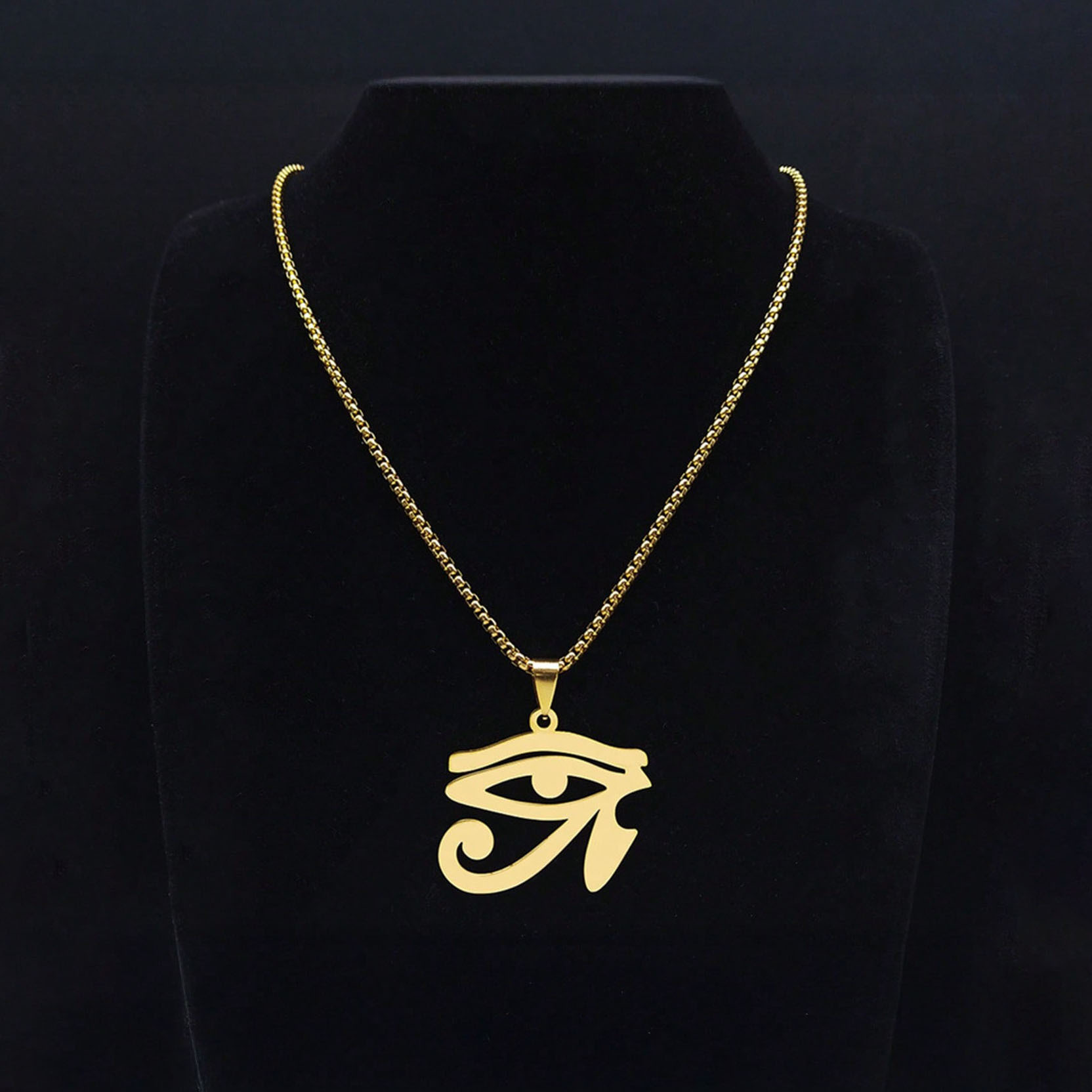 European and American Cross-Border Hot-Selling Stainless Steel Eye of Horus Pendant Necklace Personalized Retro Men's Titanium Steel Jewelry Wholesale