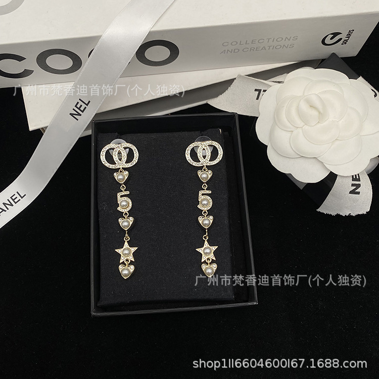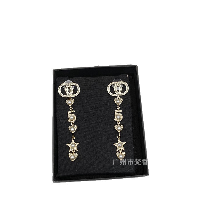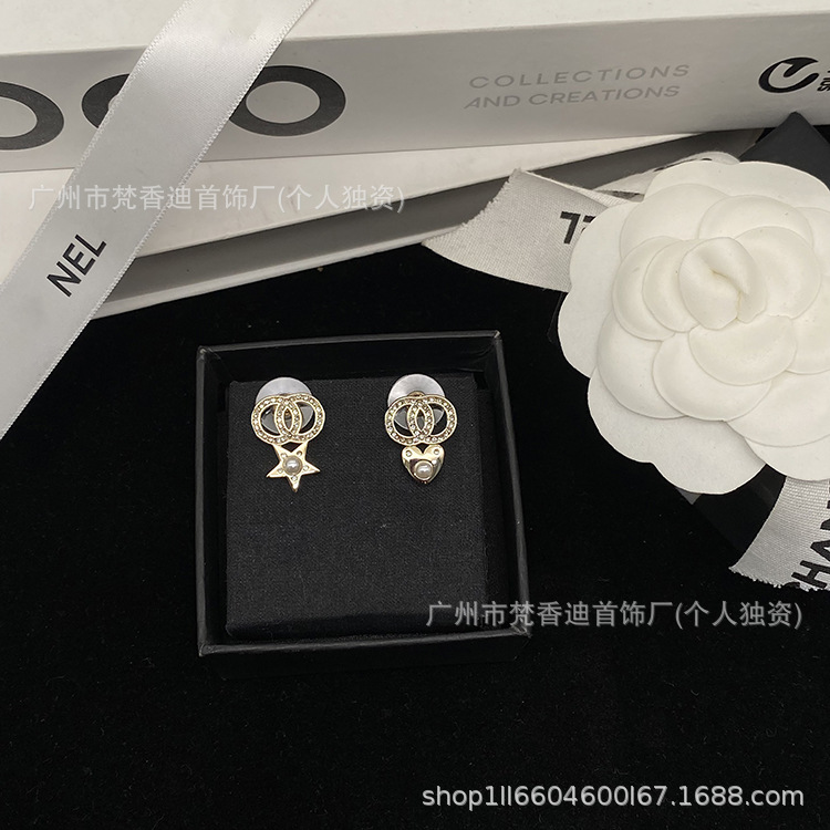 Tweed Style Classic Heart Star Multi-Element Bracelet Necklace Full of Diamonds Elegant Five-Pointed Star No. 5 Earring Set