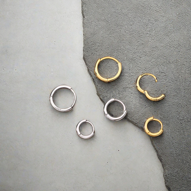 All-Over S999 Pure Silver Plain Hoop Earrings for Women, Simple Style Earrings for Sleeping, No Need to Remove Pierced Ear Holes, Earrings in Stock Wholesale