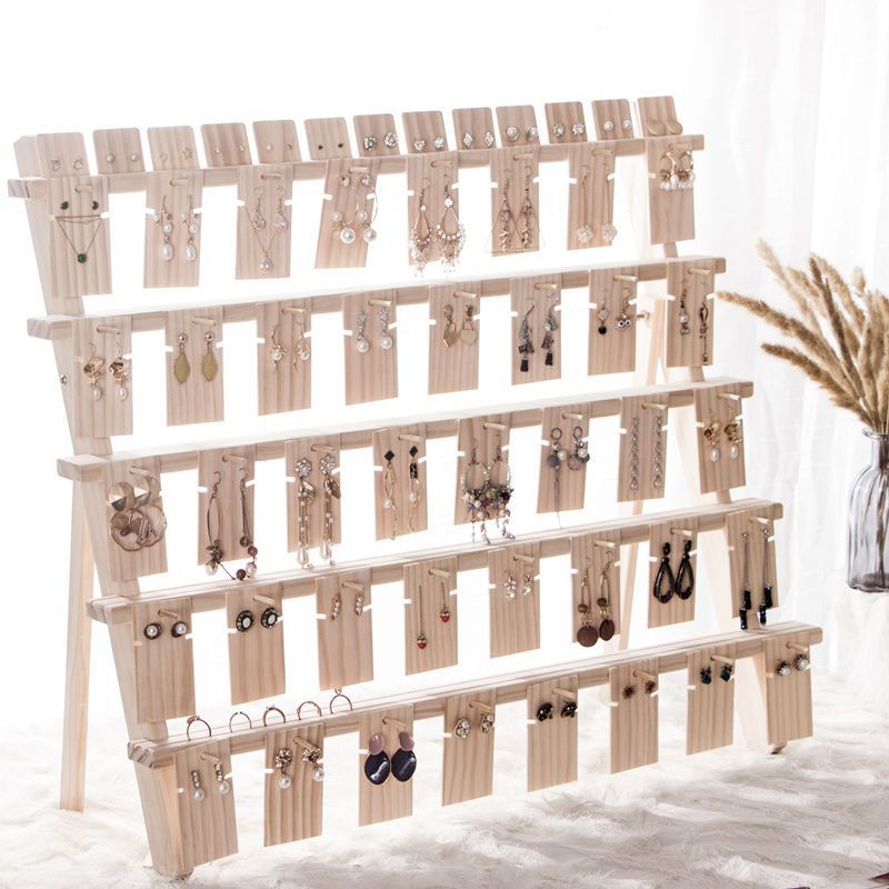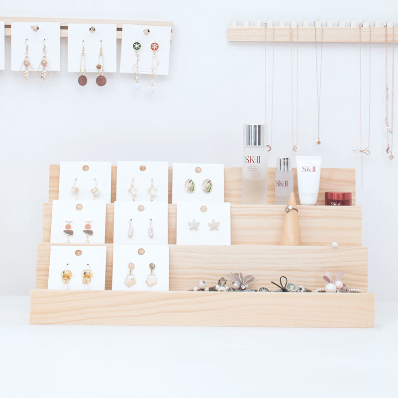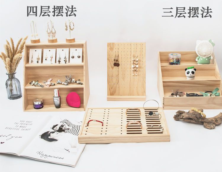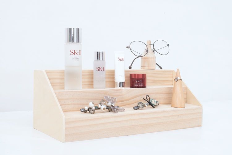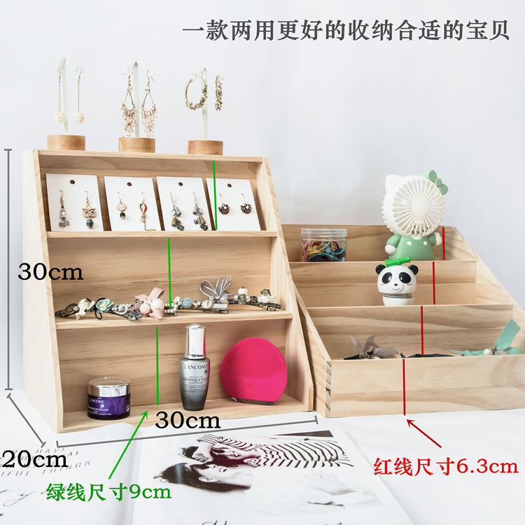 Solid Wood Trapezoidal Cosmetics Plush Doll Jewelry Storage Display Stand Hand-Made Shelf Desktop Display Table Home