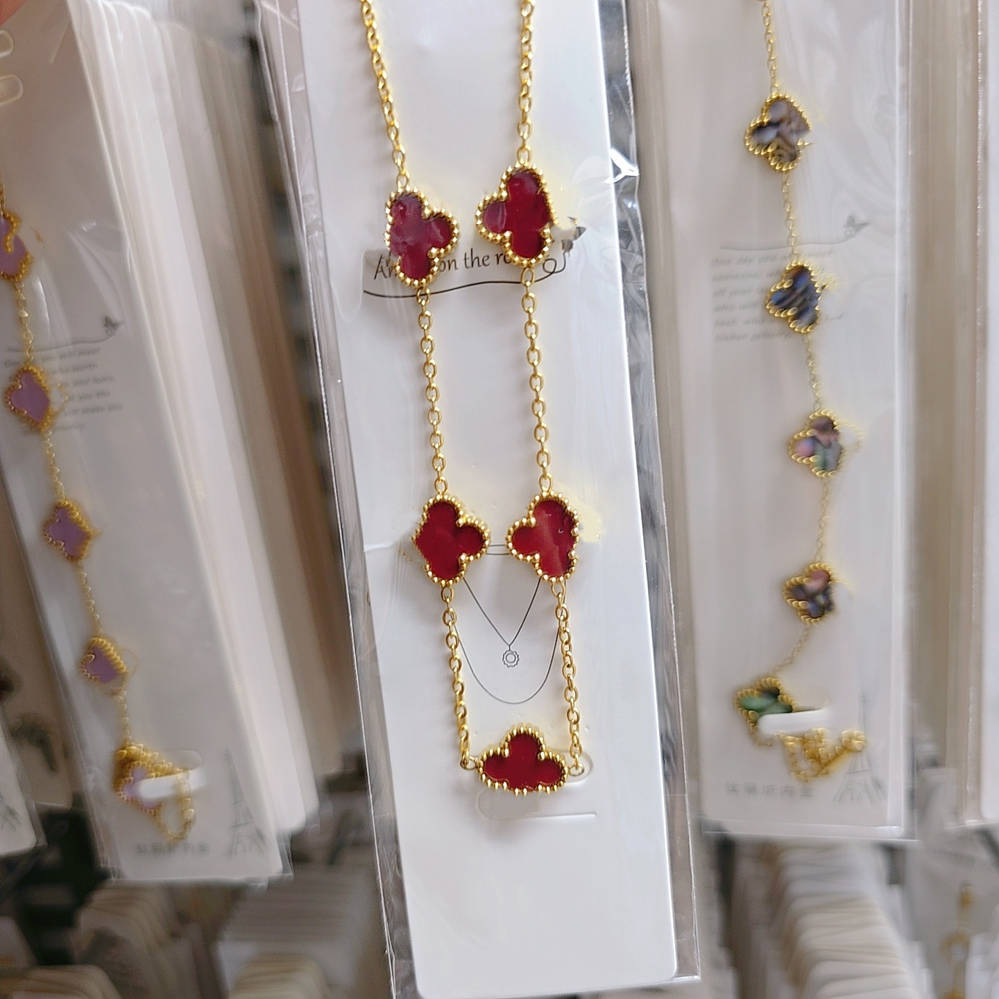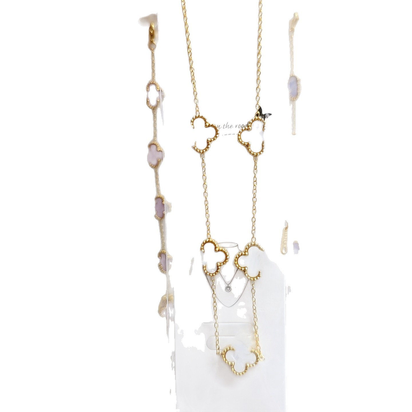 [Can Be Worn in the Shower Without Fading] European and American Fashion Cross-Border Popular Four-Leaf Clover Necklace Five-Flower Necklace Double-Sided Necklace