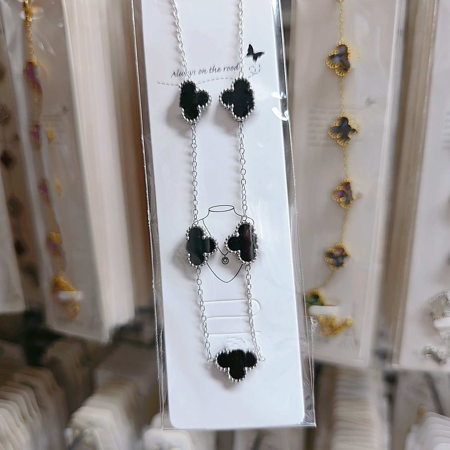 Color: Five-flowered four-leaf clover necklace (steel black)